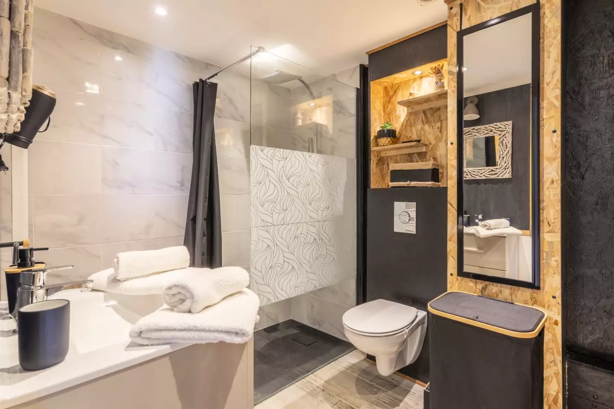 → Avant votre arrivée et après votre départ, notre équipe réalise un ménage de qualité hôtelière et met à votre disposition des serviettes de bain, du linge de lit de qualité hôtelière ainsi qu'une ligne de produits de soin naturels.