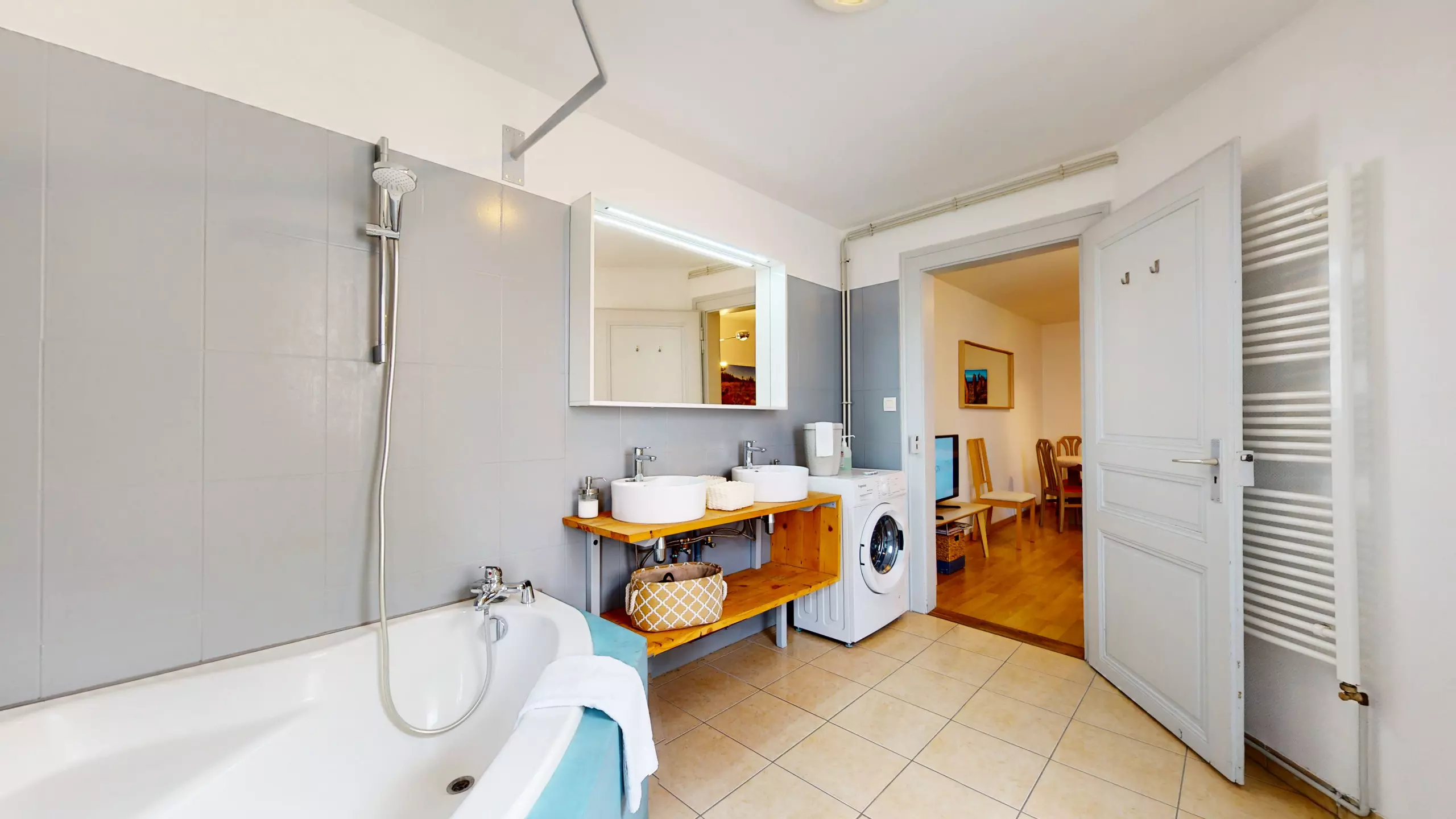 ? des serviettes propres seront à votre disposition ainsi un tapis de bain et un torchon par cuisine,