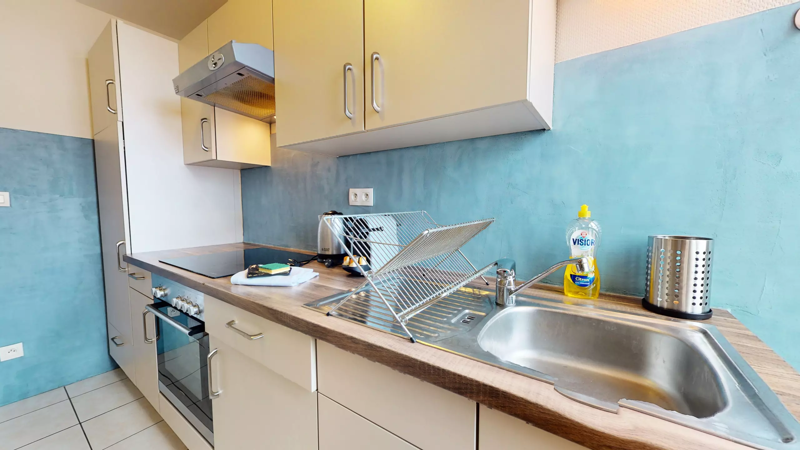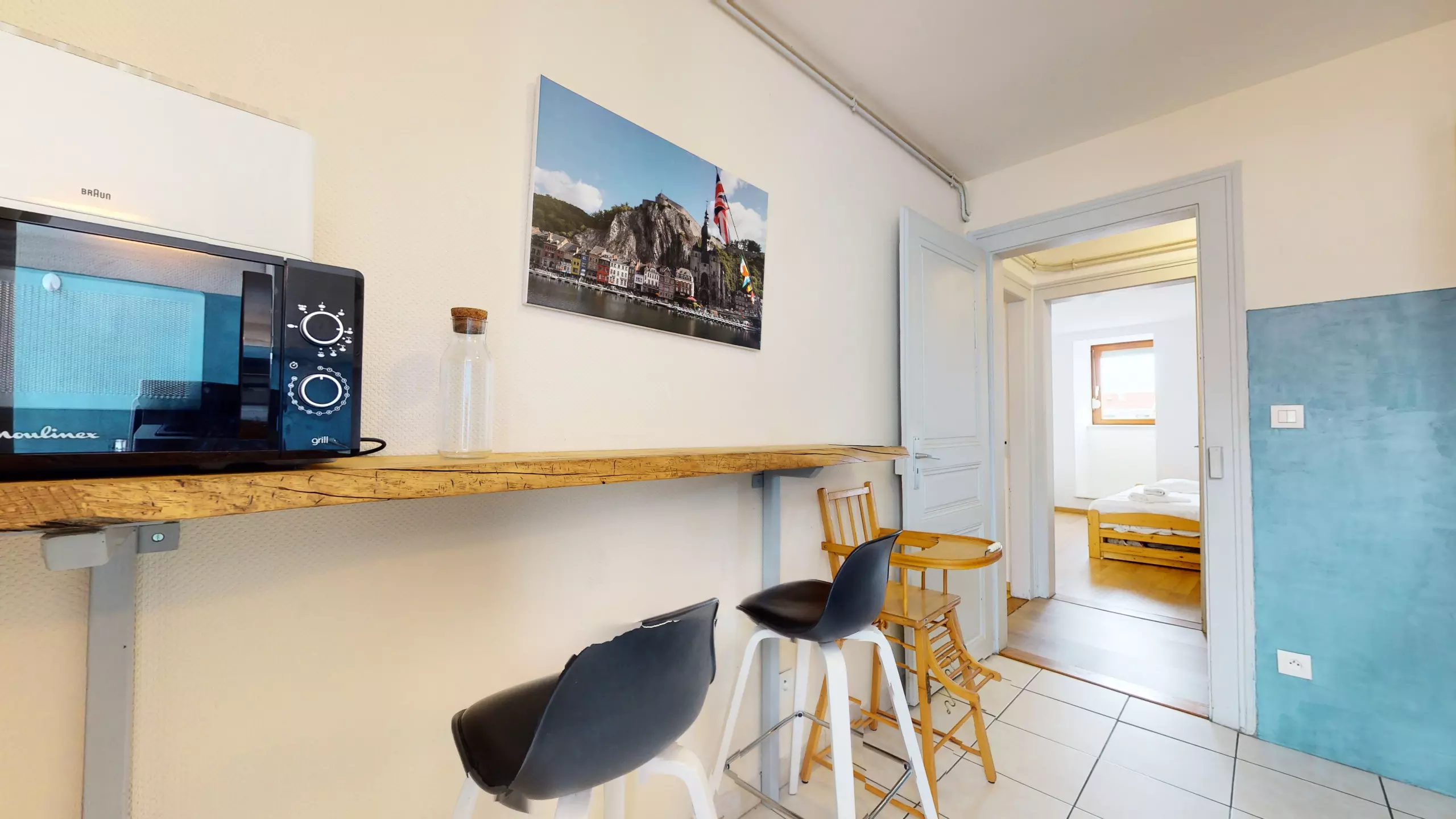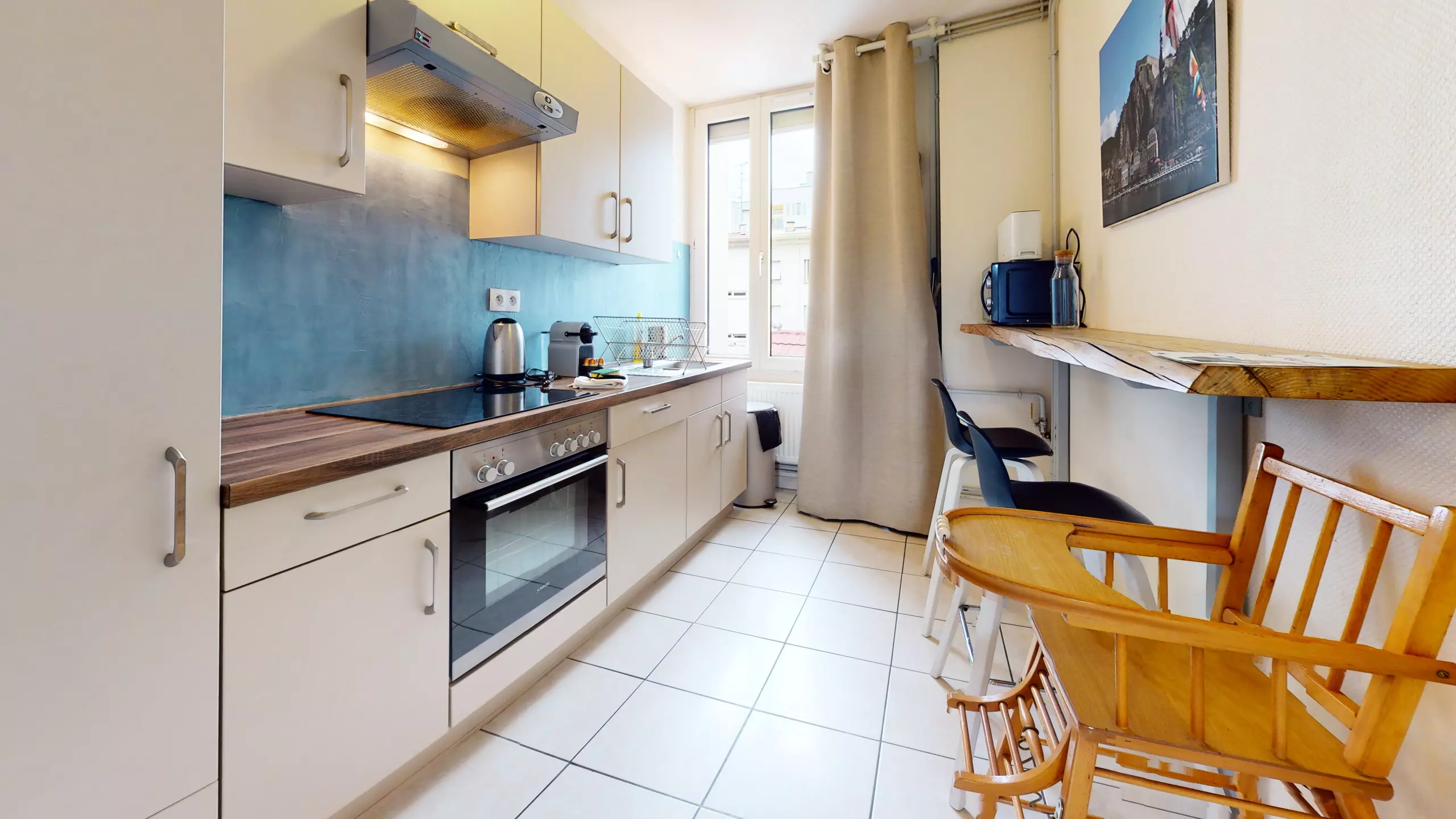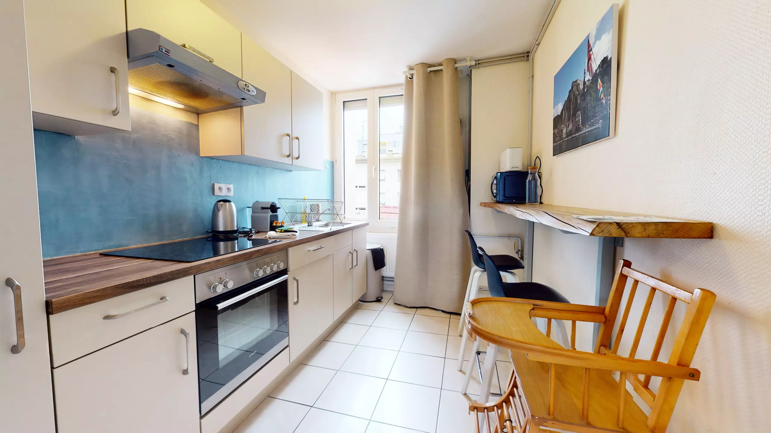? d'une cuisine équipée (plaque de cuisson, four, réfrigérateur/congélateur, cafetière Nespresso, bouilloire, micro-onde et grille-pain),