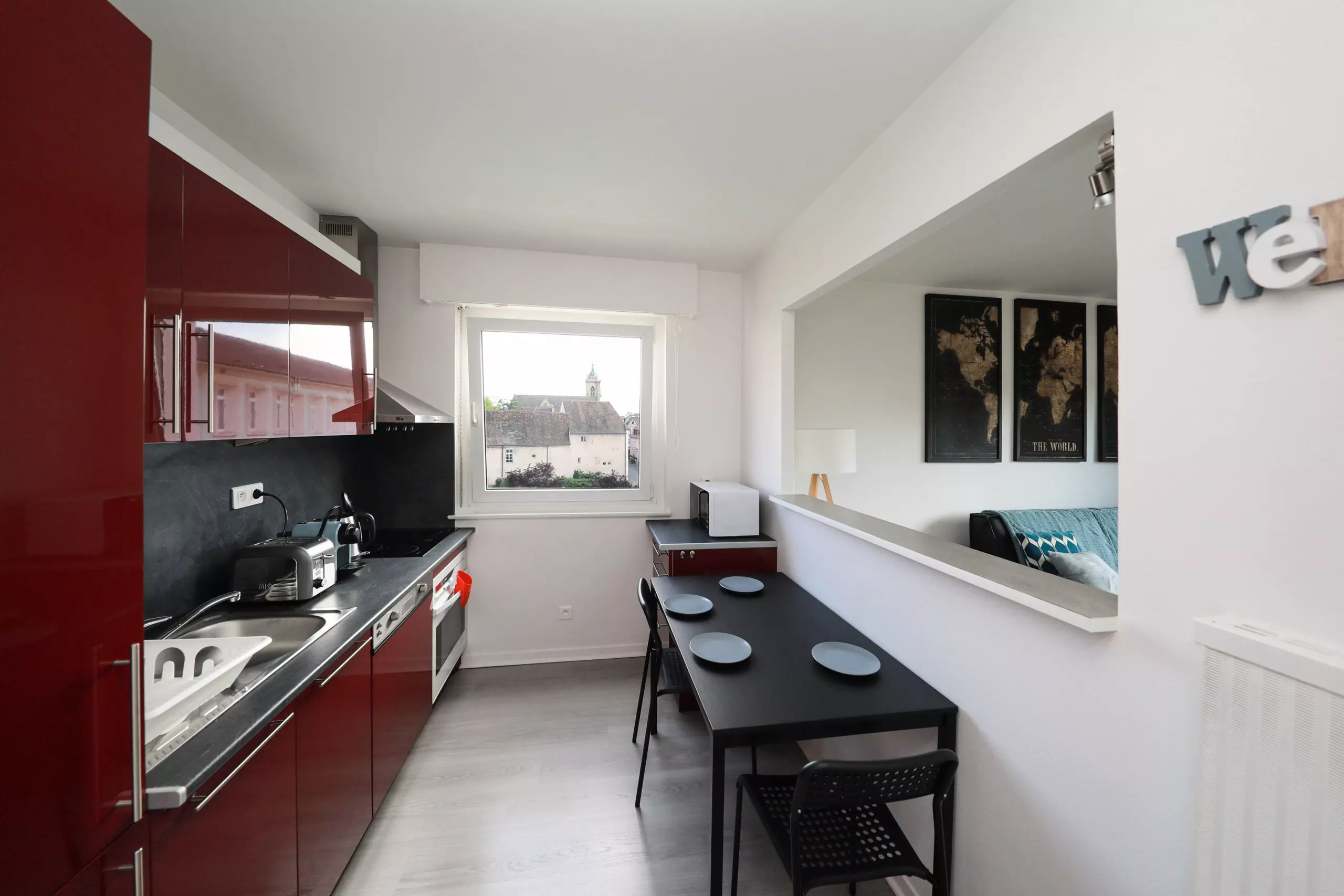 ? Une place de parking privative dans un parking souterrain situé à 150m de l'appartement est inclus avec la réservation (9 Rte de Neuf-Brisach).