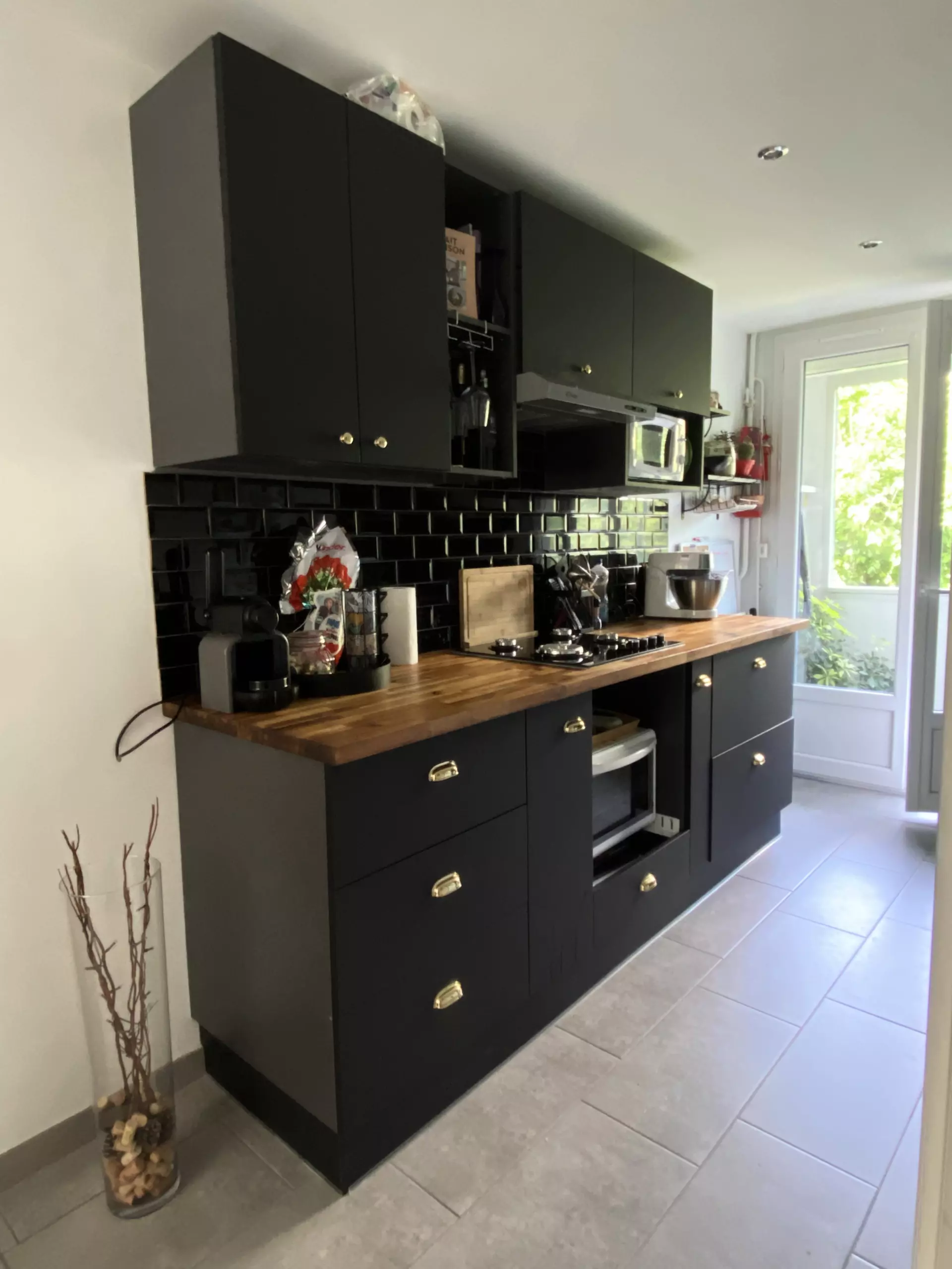 La cuisine américaine, à gaz, est équipée avec réfrigérateur, micro-ondes, four, congélateur, lave-vaisselle, vaisselle/couverts, ustensiles/cuisine, cafetière, grille pain et bouilloire.