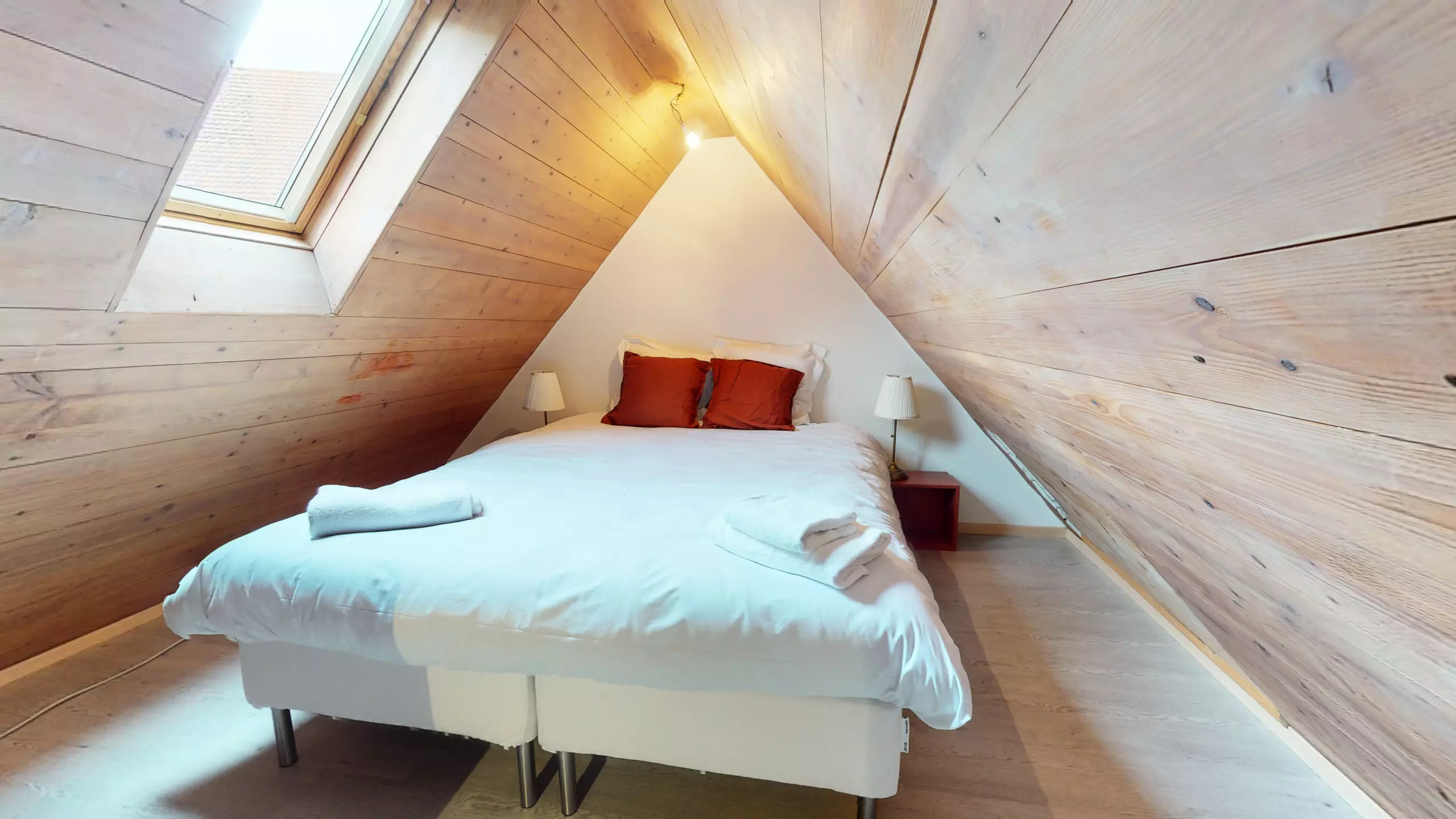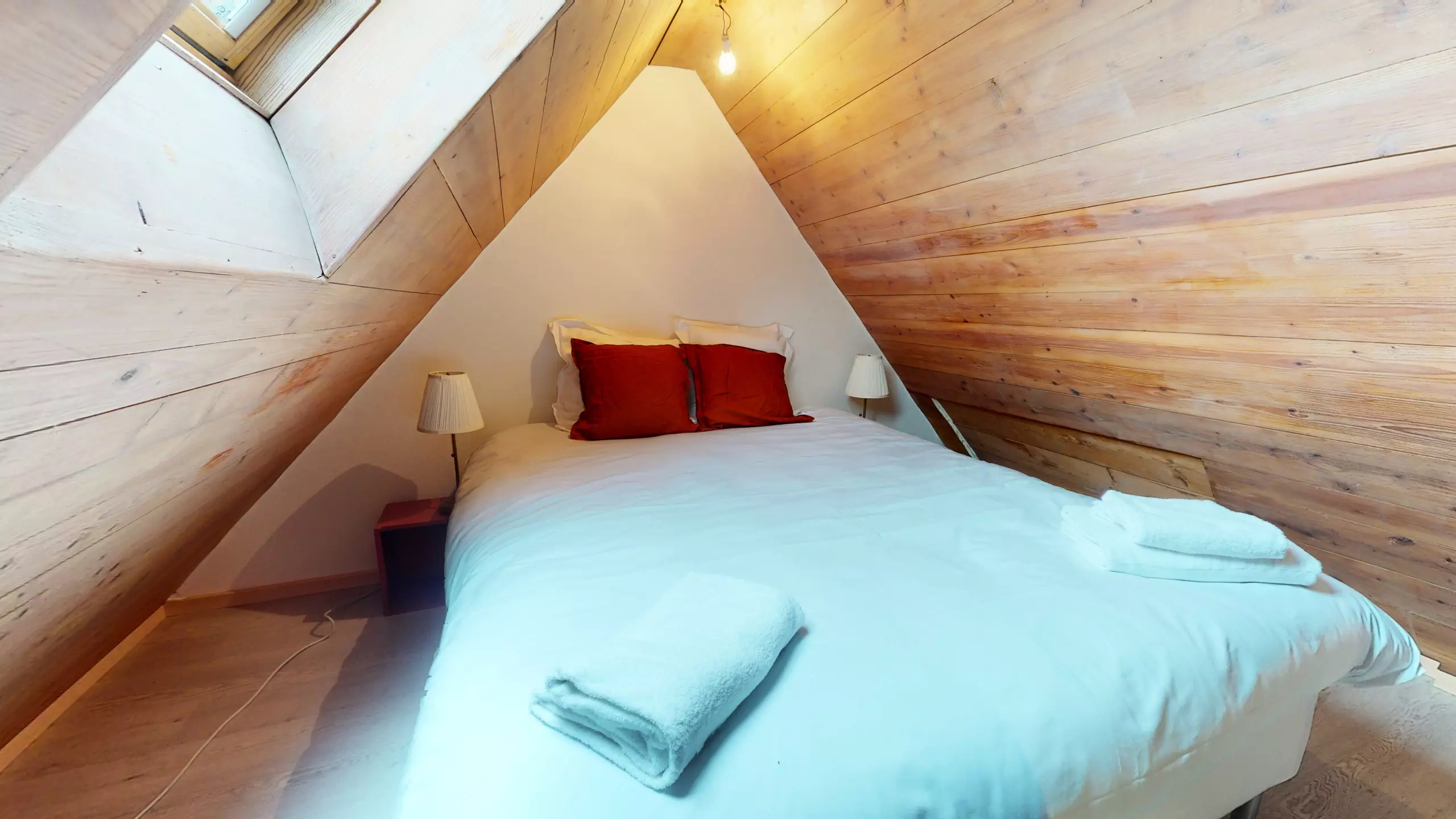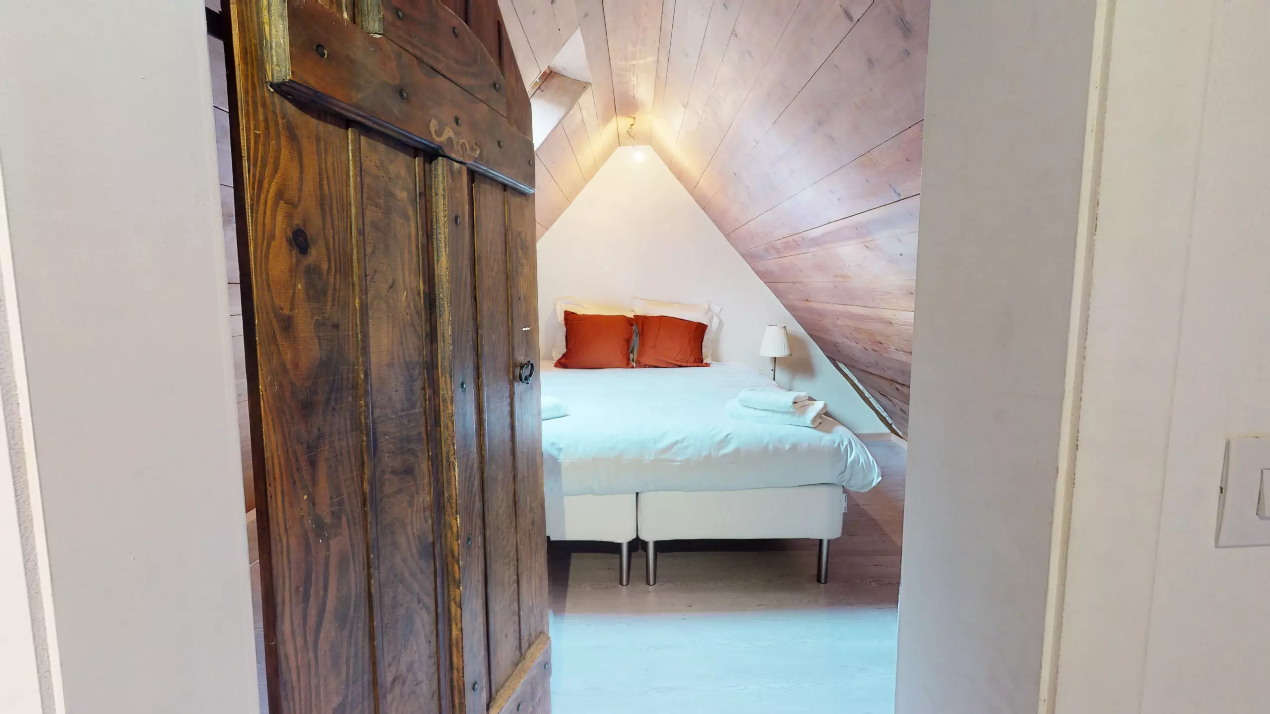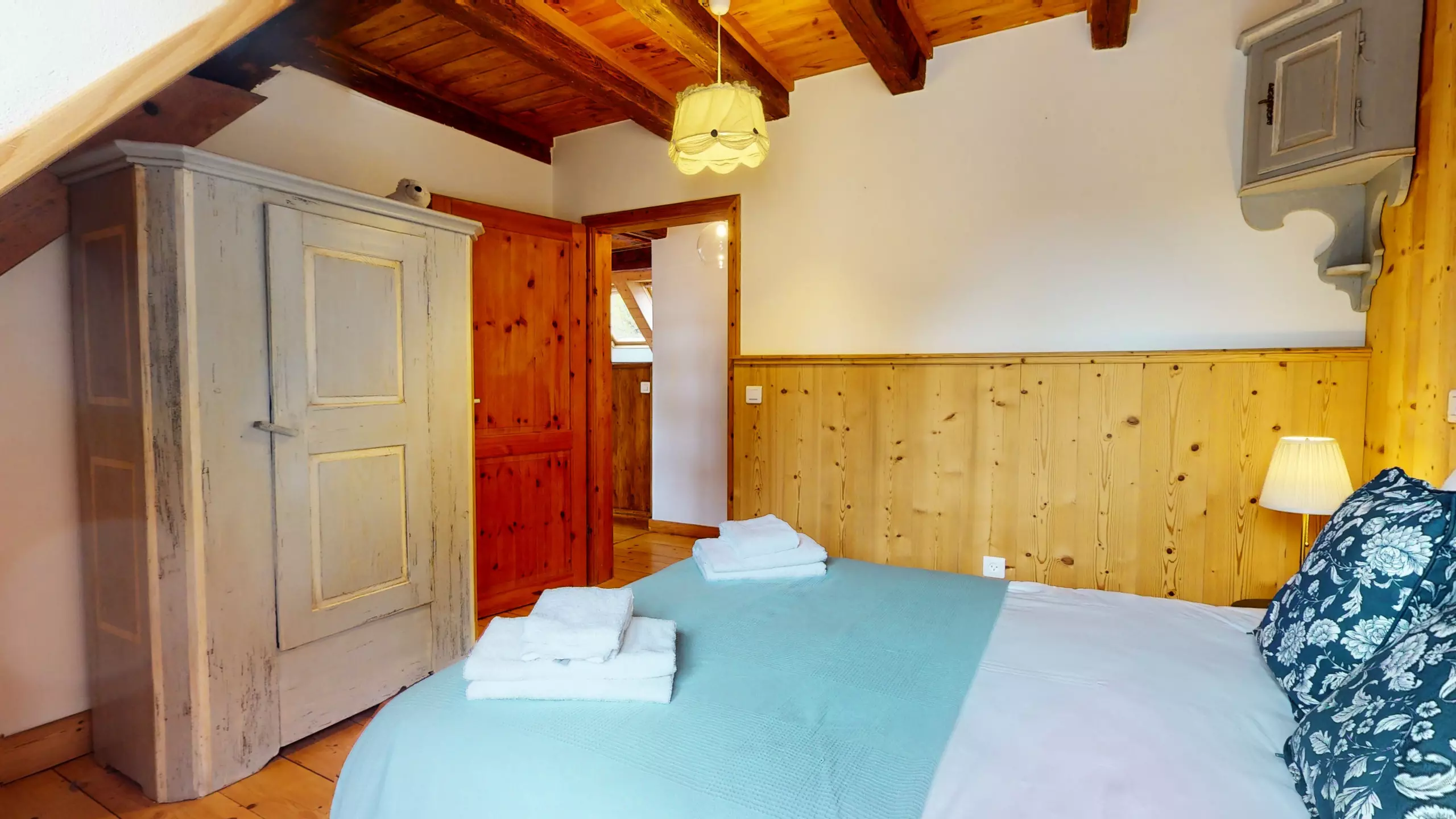 ?D'une chambre avec un lit double et une armoire de rangement.