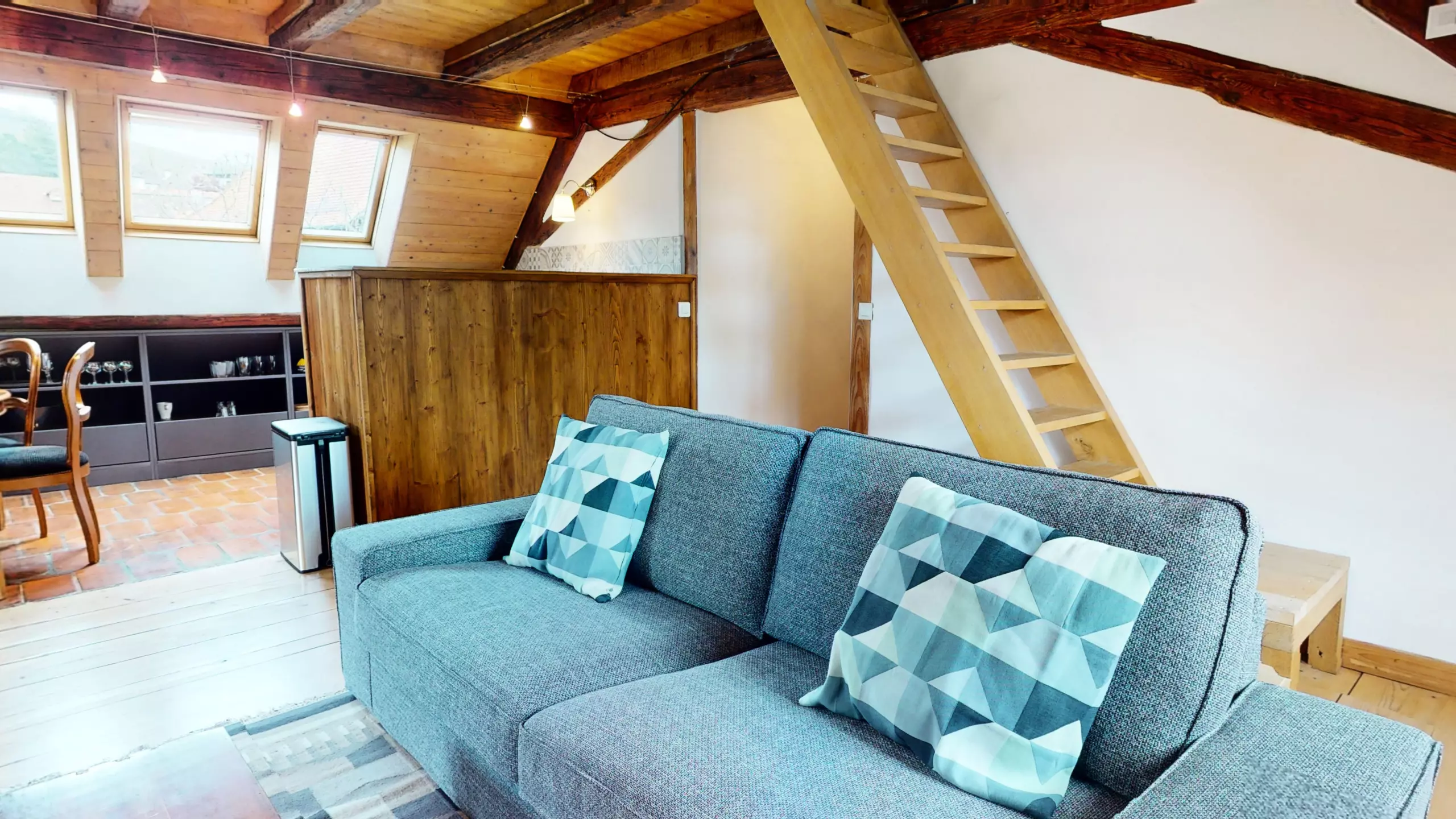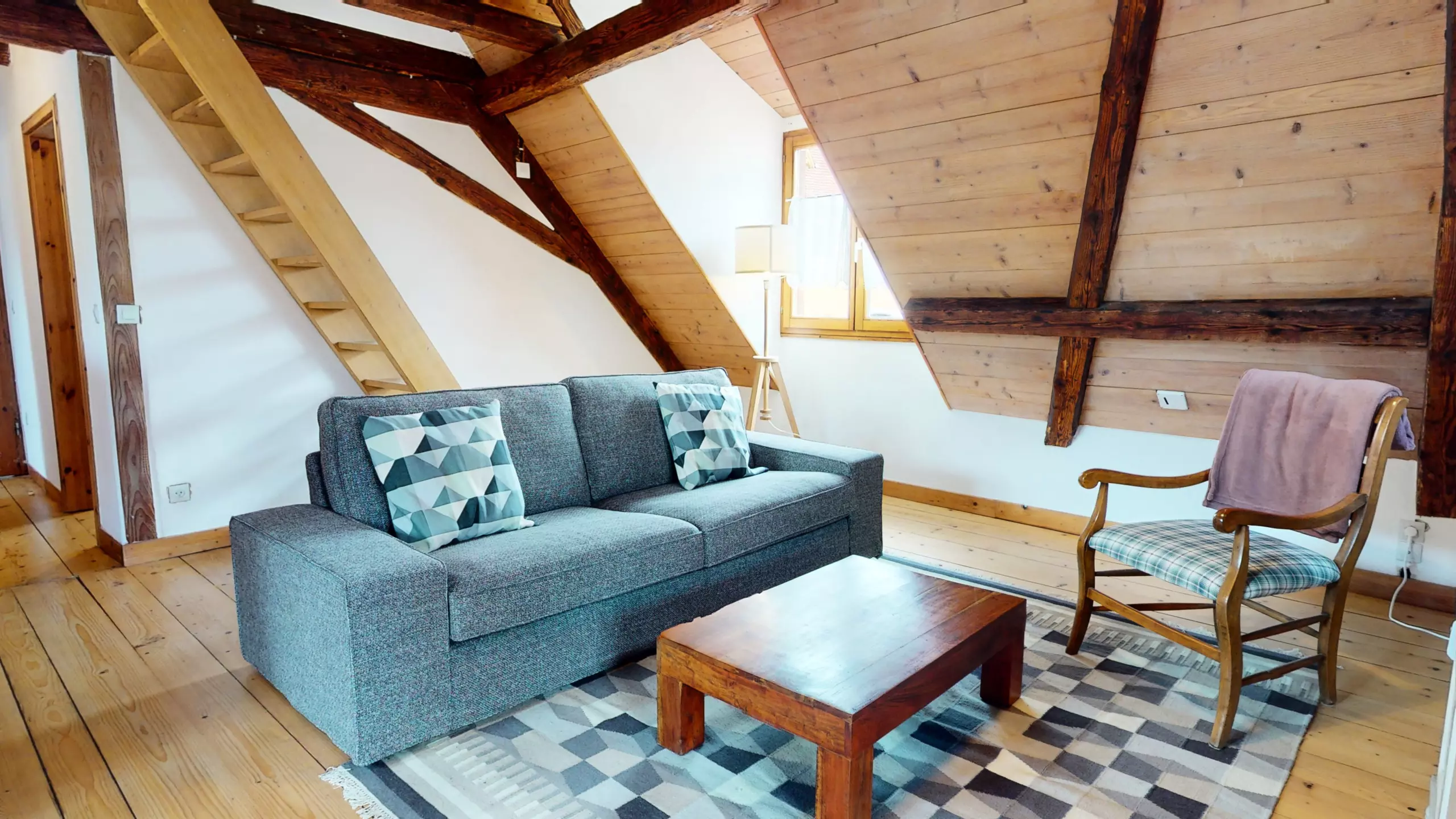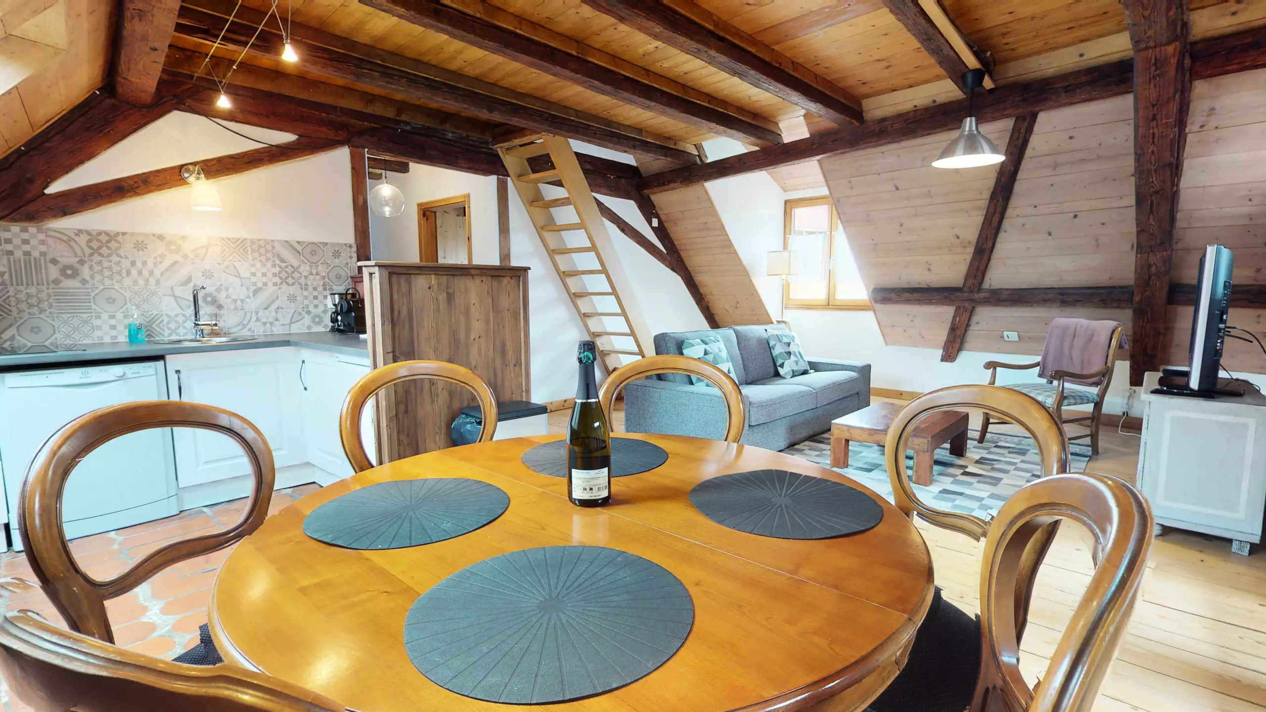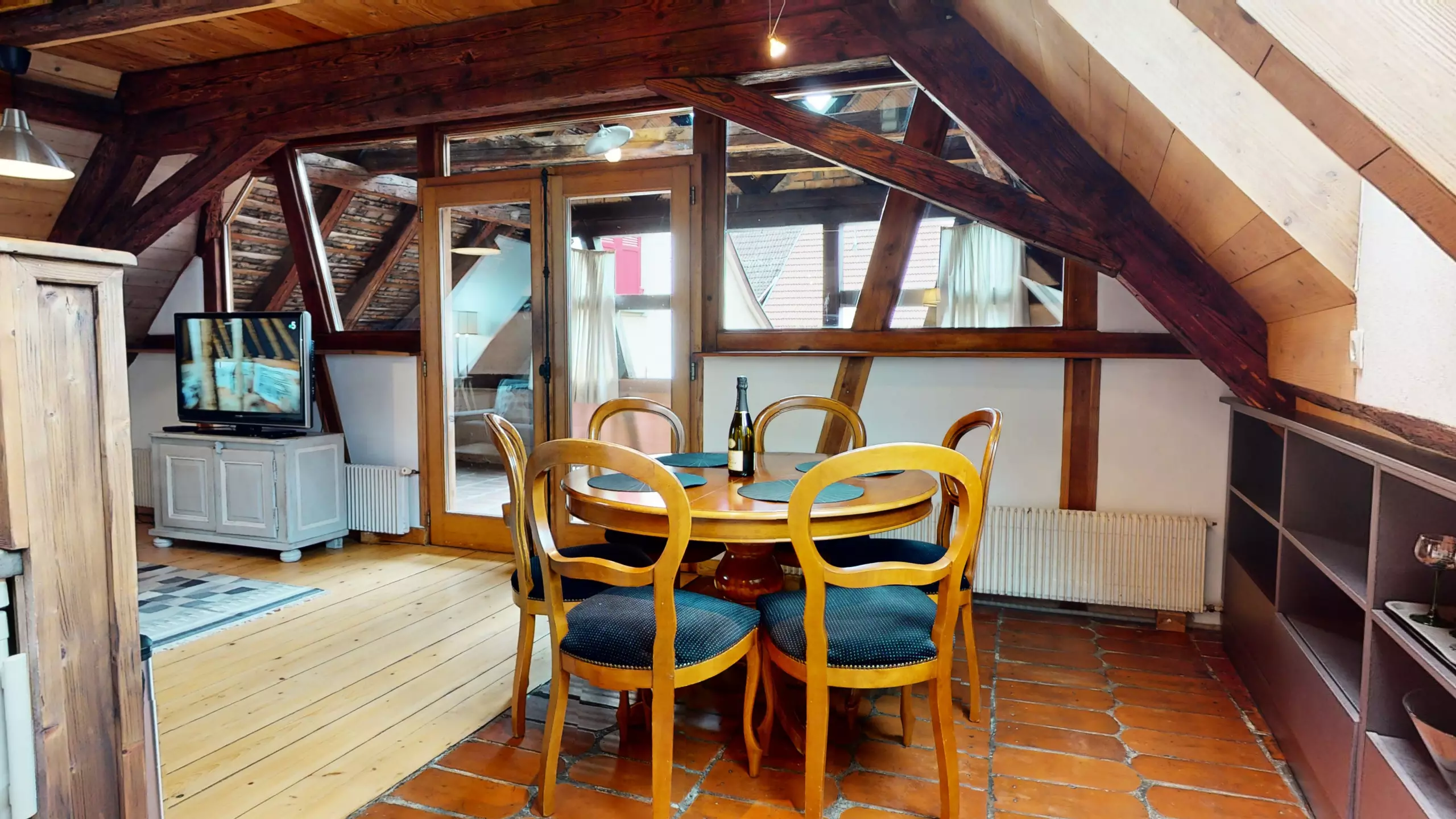 ? L'appartement Manala 2 se trouve au deuxième étage d'une demeure Alsacienne. ? L'accès se fait avec des escaliers en bois d'époque (raide et biscornue)