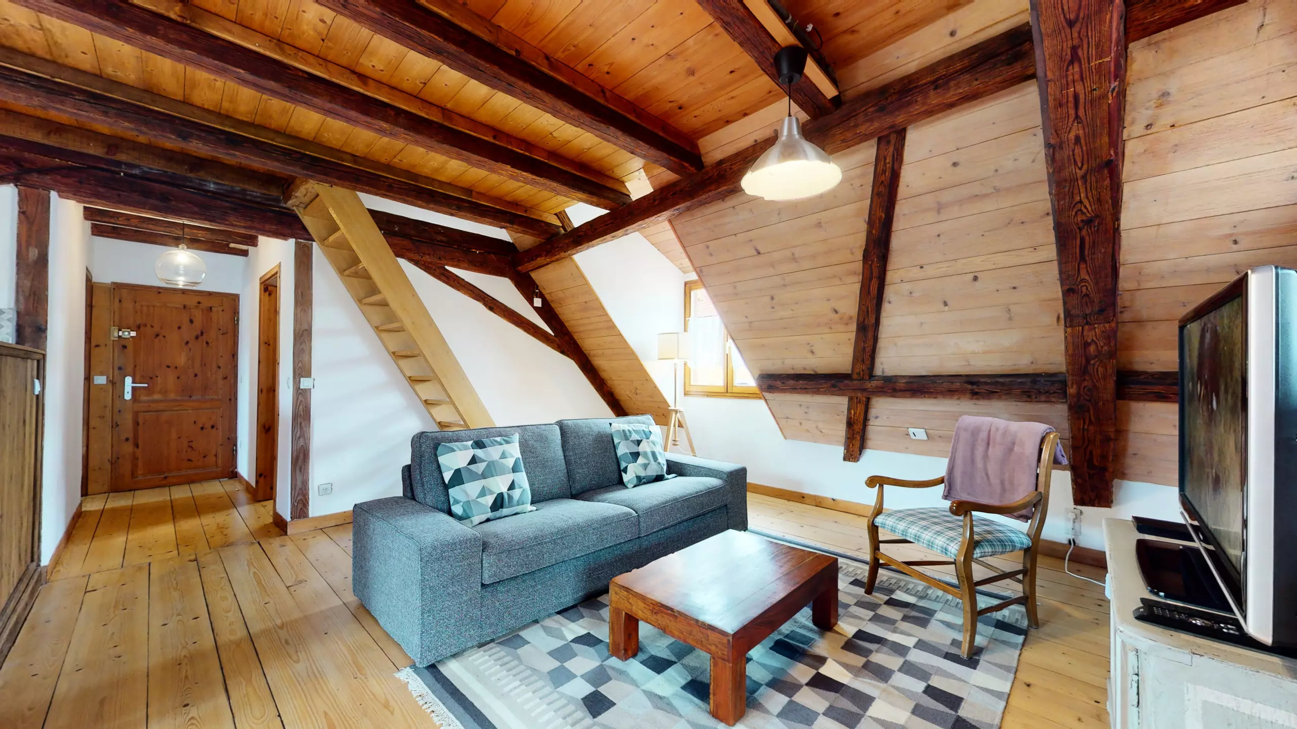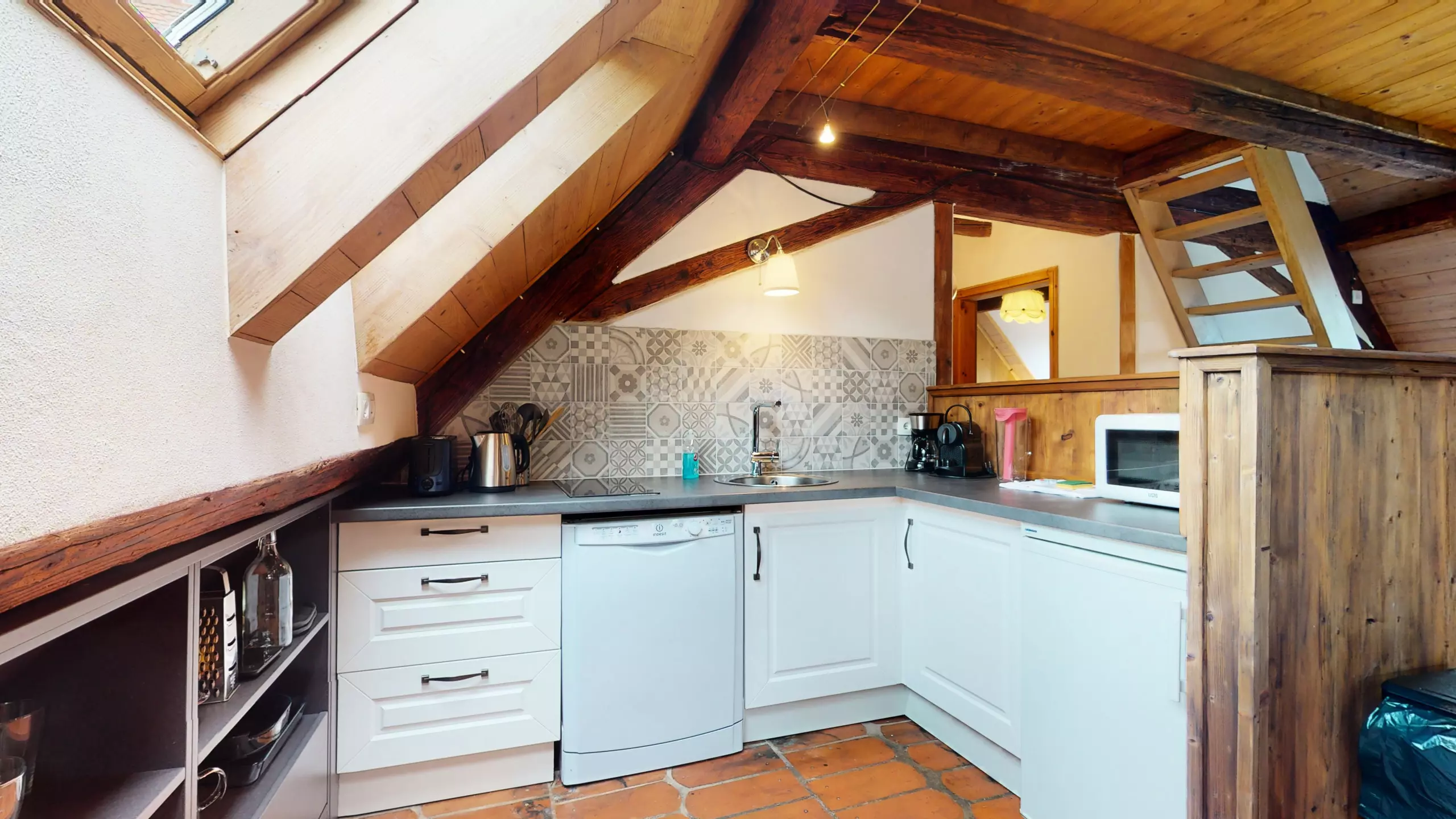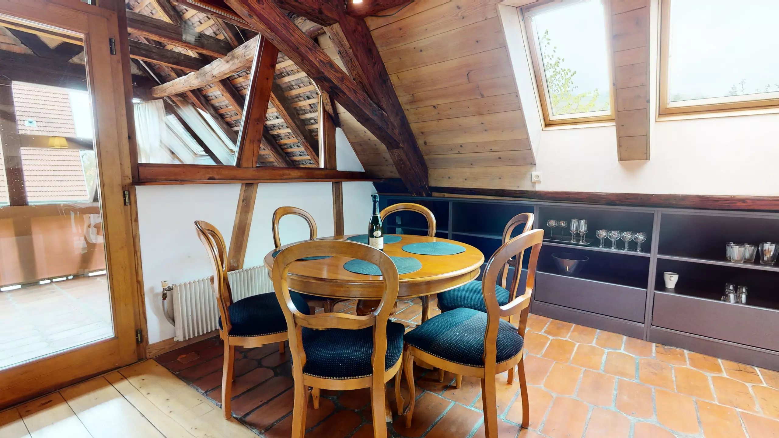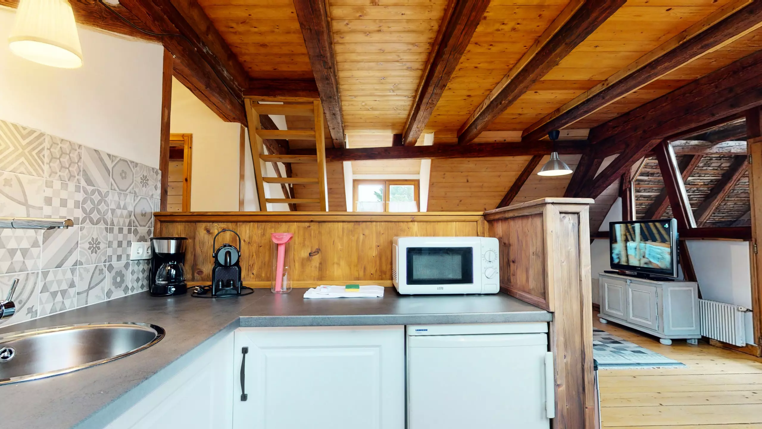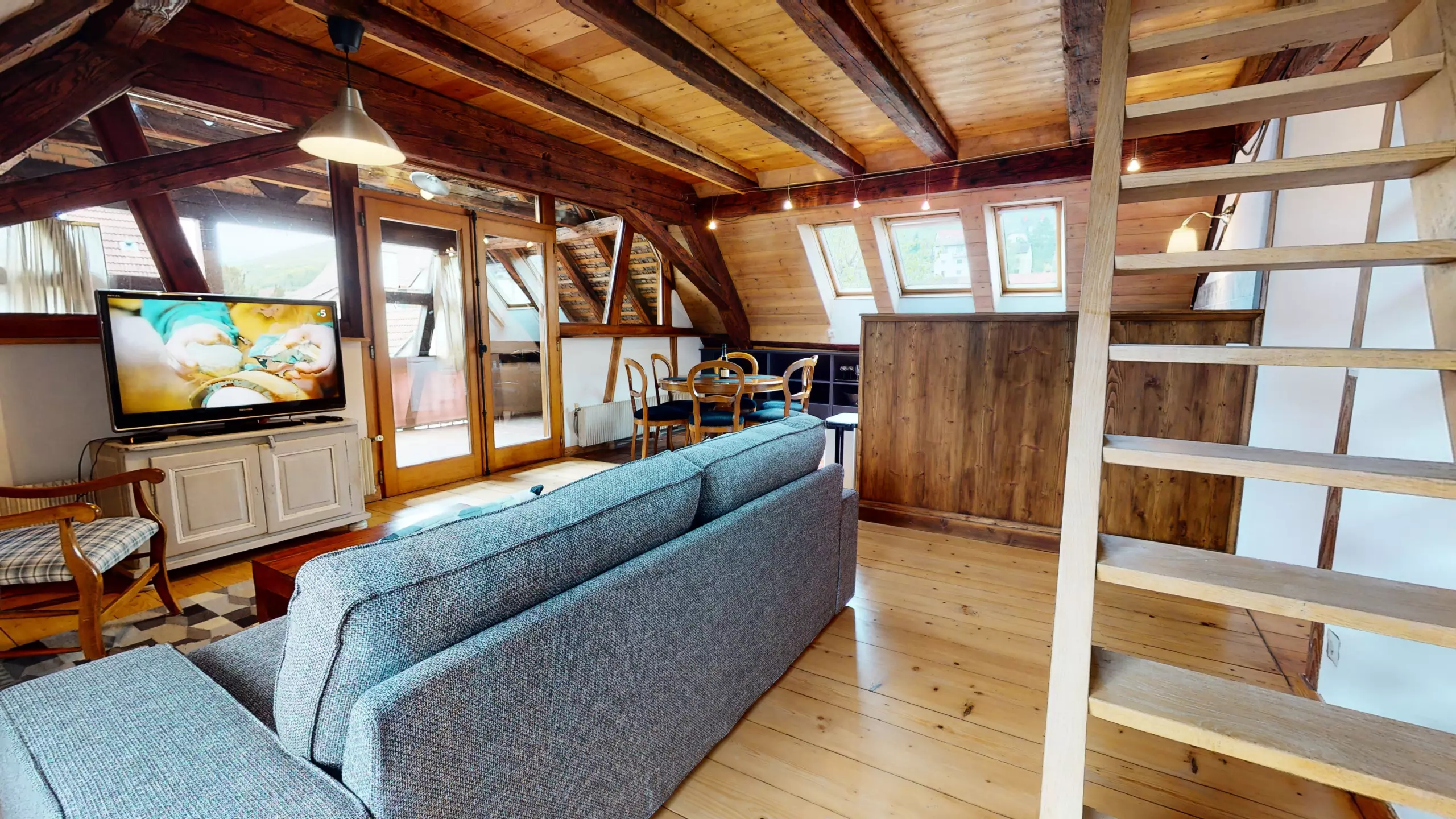 ? L'appartement Manala 2 se trouve au deuxième étage d'une demeure Alsacienne. ? L'accès se fait avec des escaliers en bois d'époque (raide et biscornue)