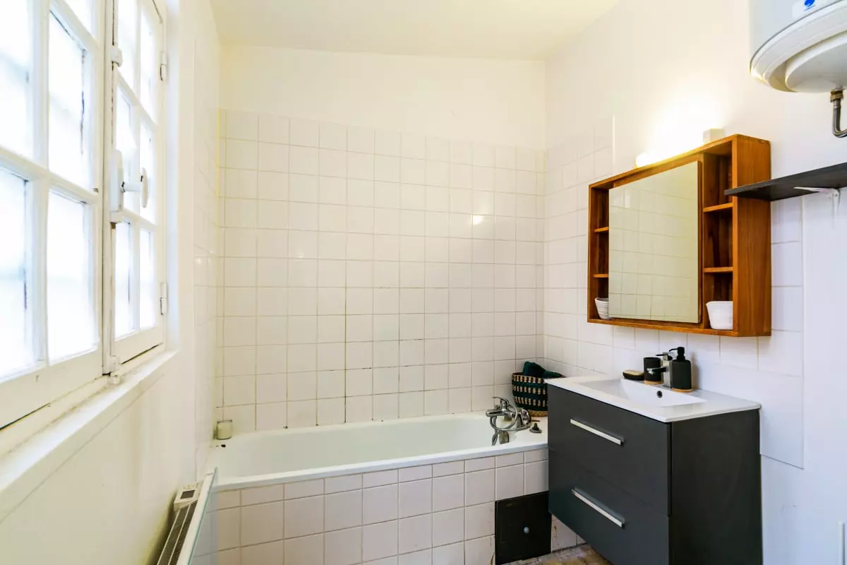 Ce beau studio de 28 m², au fond d'une cour privée, est situé au rez-de-chaussée et est composé de :