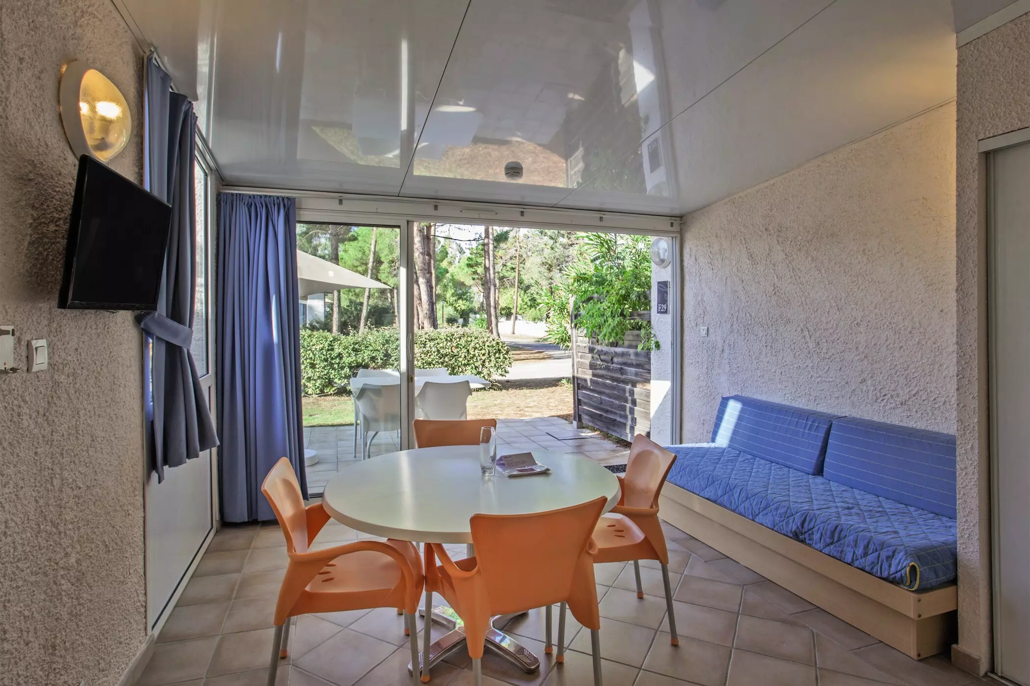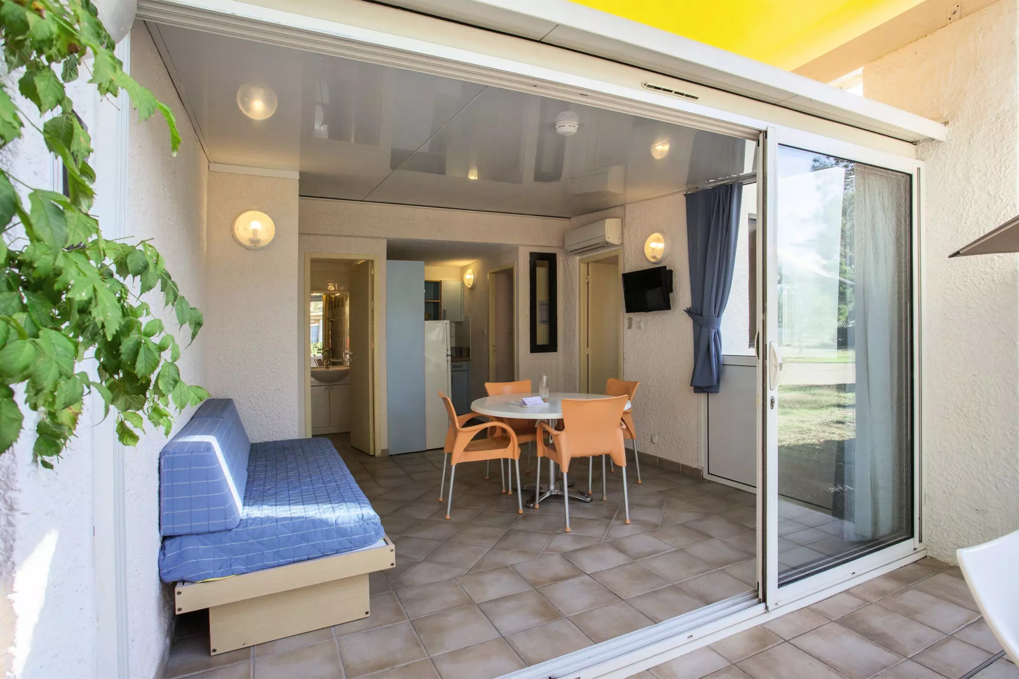 Le bungalow est équipé d'une télévision, de la climatisation, d'un coffre-fort et de mobilier de jardin sur la terrasse.