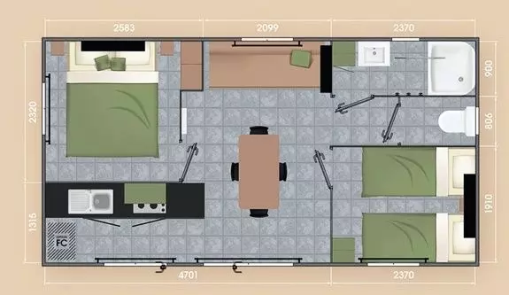 Mobil home Family Premium 3 pièces 4 personnes Climatisé avec :