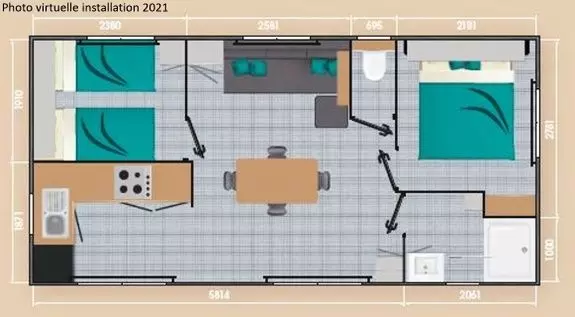 Mobil home Family Luxe 3 pièces 4 personnes Climatisé avec :
