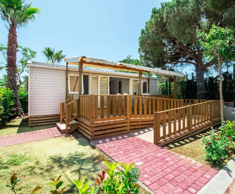Mobil home Optiméo PMR 3 pièces 4 personnes Climatisé accessible aux personnes à mobilité réduite, avec :