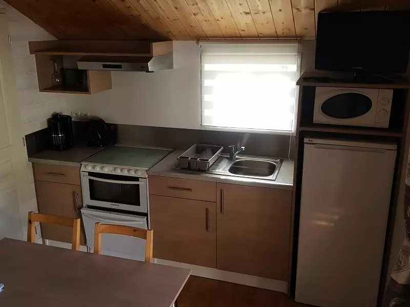 Vous recherchez un chalet tout confort dans une ambiance camping familial ? Vous avez raison ! Et le K830 est la perle de nos chalets pour des séjours été comme hiver.