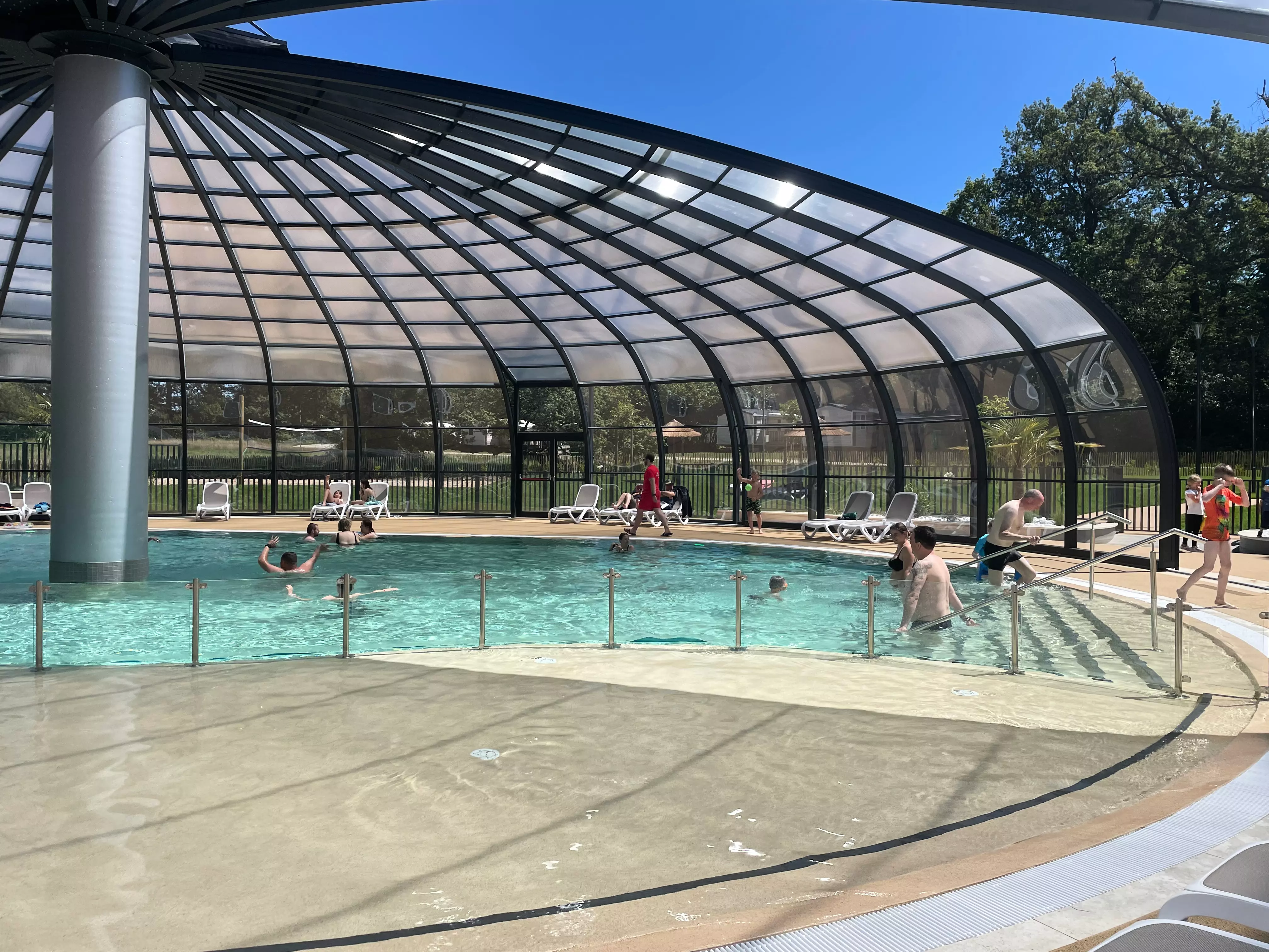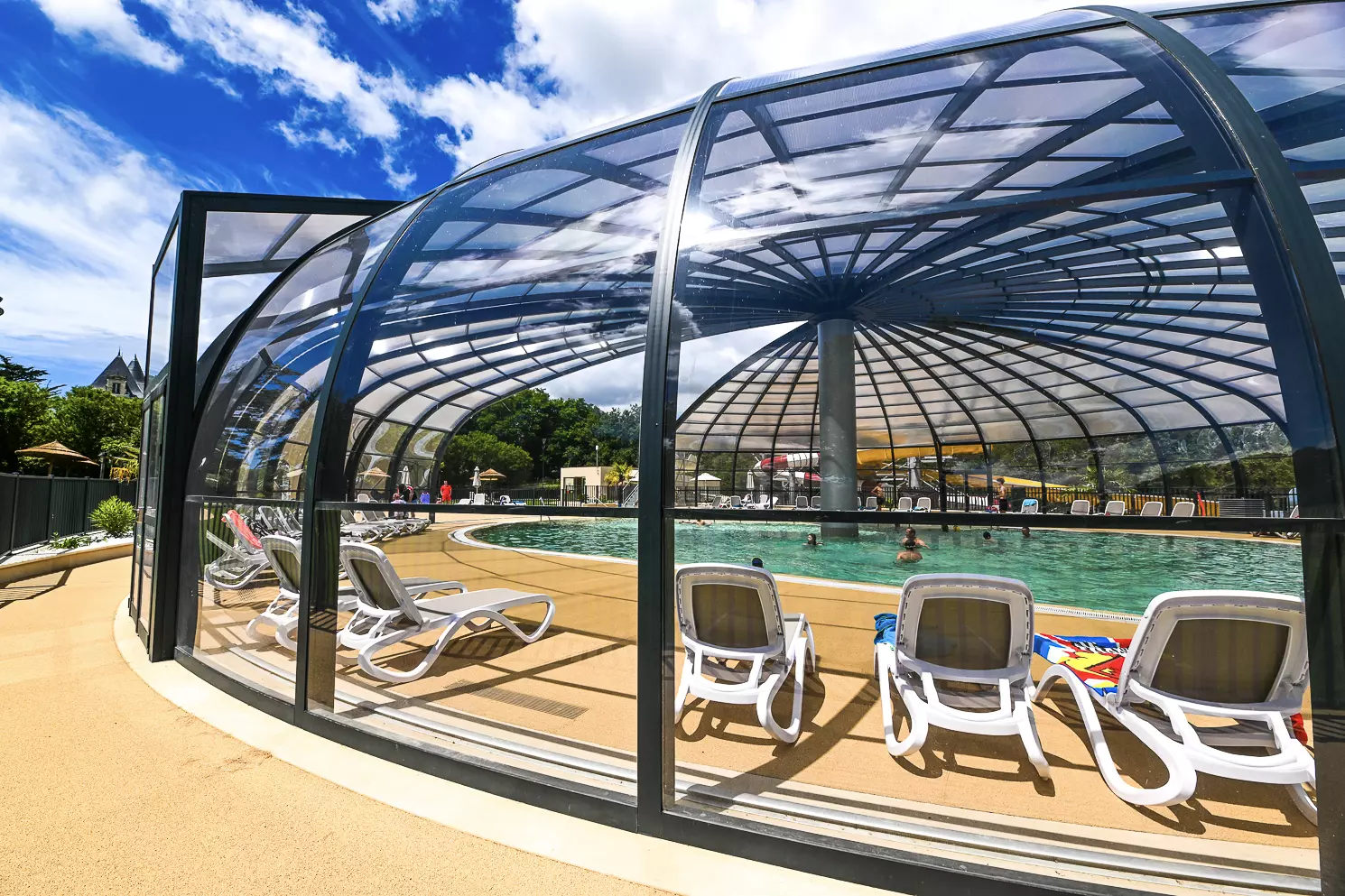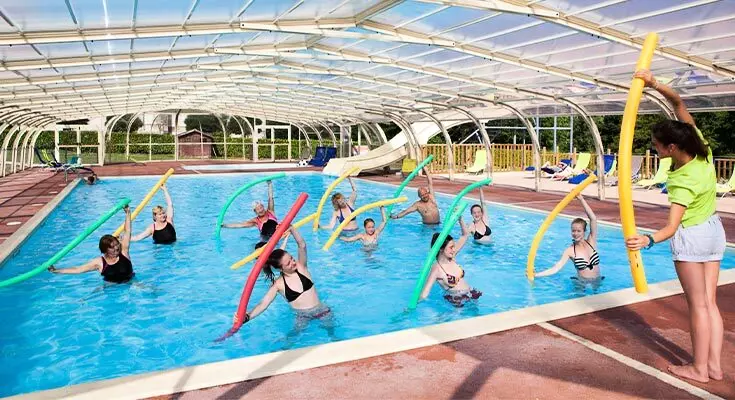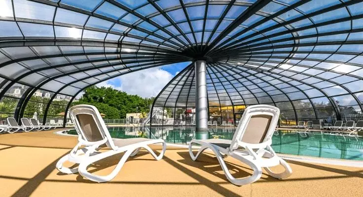 Vous profiterez du bel espace aquatique avec piscine couverte chauffée, pataugeoire, toboggans aquatiques, piscine