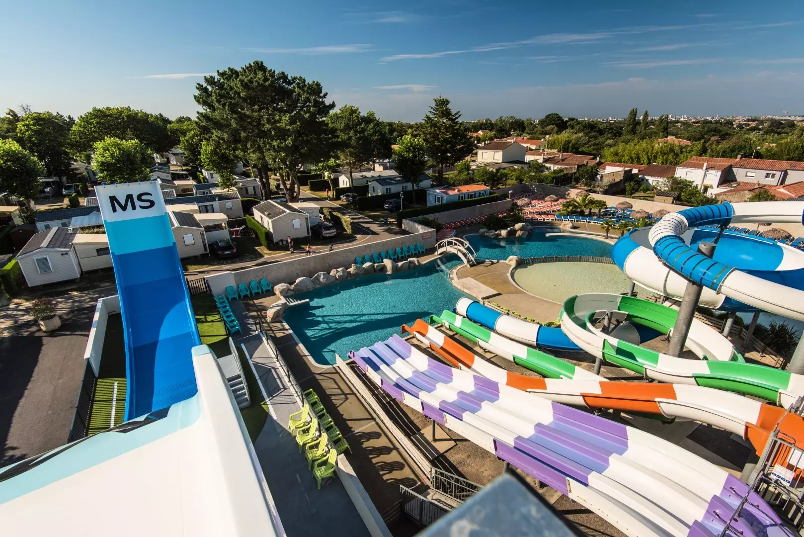 extérieur : 3 piscines chauffées (dès le 21/05)- pataugeoire 200m² - jeux ludiques - bains à remous - banquettes anatomiques - rivière massante - 7 toboggans - bassin de nage 250m² non chauffé