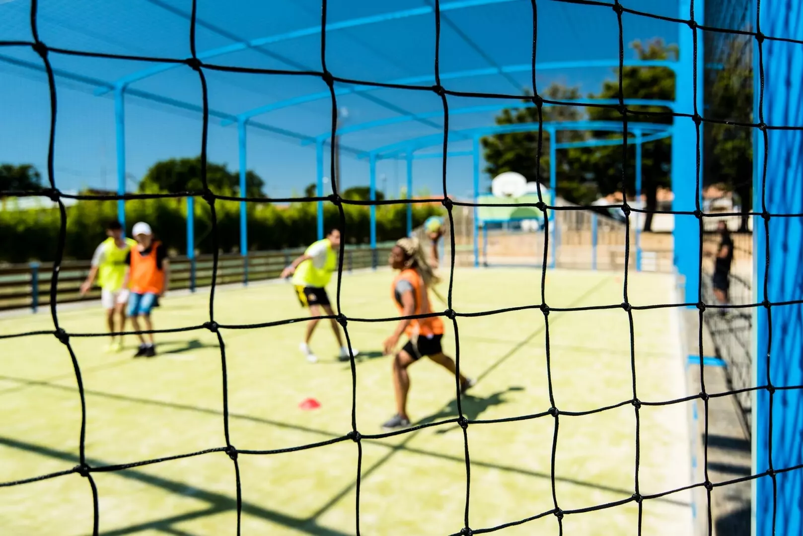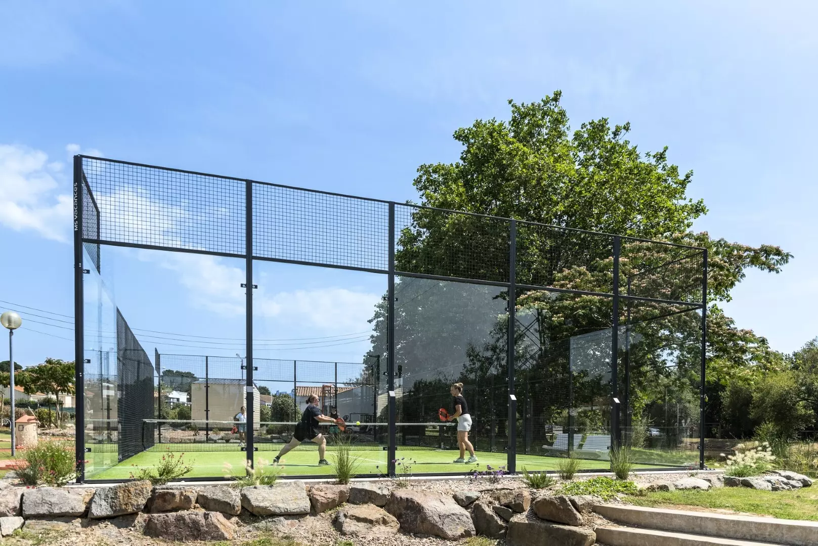 salle de jeux intérieure avec baby-foot, salle de fitness, aire de jeux pour les enfants avec châteaux gonflables et trampolines, terrain de tennis, tables de tennis de table, mini-golf, terrain multisports, boulodrome