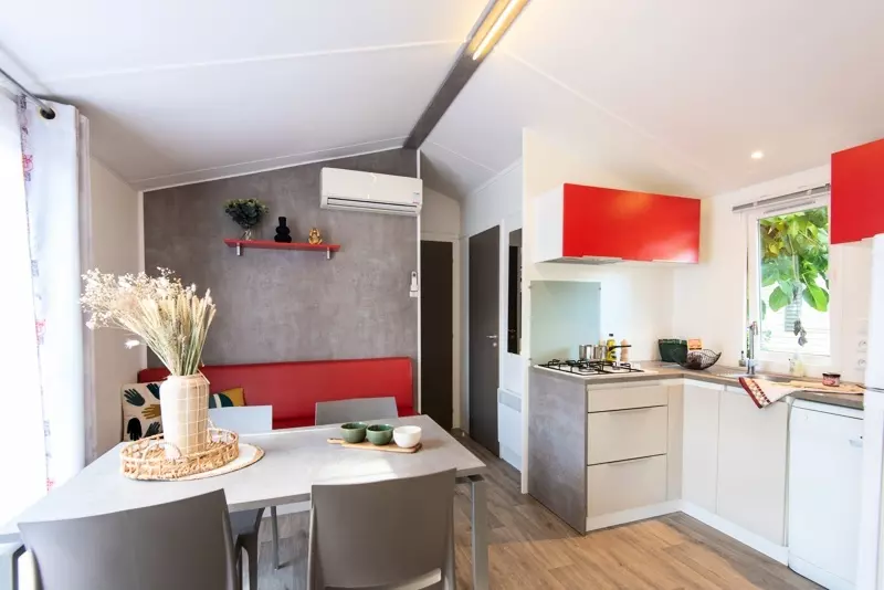 Mobil home 4 pièces 6 personnes Climatisé avec :