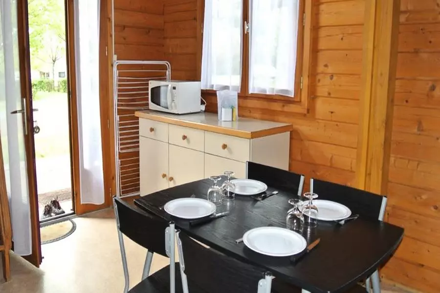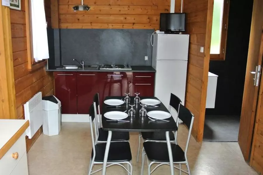 Le chalet comprend une cuisine équipée d'un réfrigérateur, de plaques de cuisson, d'un micro-onde, d'une cafetière électrique, des ustensiles de cuisine et vaisselle. Chaque couchage inclut les oreillers et les couvertures (location de draps en option). Le chalet dispose également du chauffage électrique et d'une terrasse avec salon de jardin.