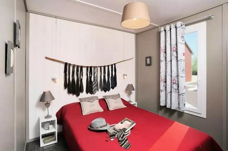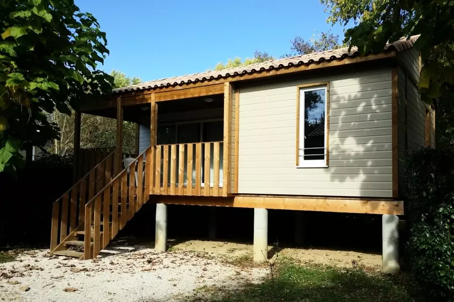 Chalet de 24m² de 3 Pièces 4 Personnes composé d'un coin salon, d'une cuisine équipée, d'une chambre avec 1 lit double, d'une chambre avec 2 lits superposés, d'une salle de bain (douche de 1m20) et de WC. Terrasse couverte. Les couvertures et oreillers sont fournis.
