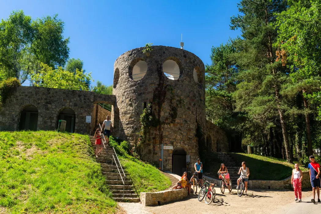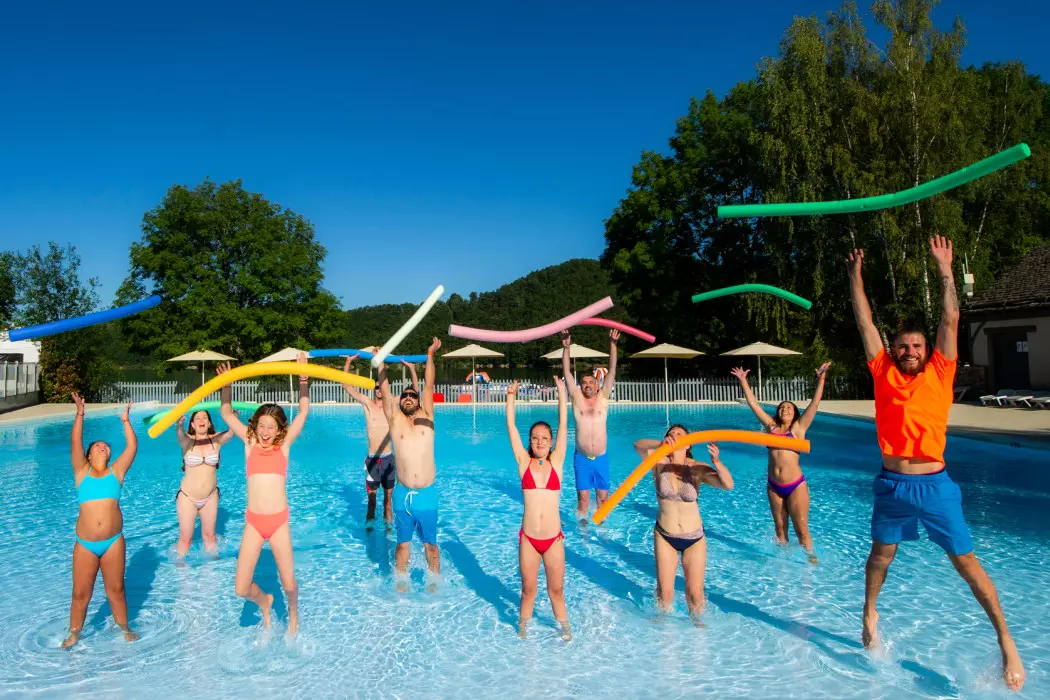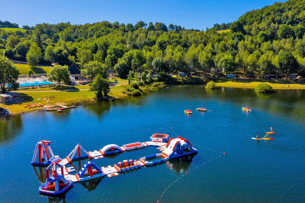 Venez profiter de sa piscine extérieure qui vous offre une vue imprenable sur le lac et les collines environnantes et ses toboggans, dont une rivière à dévaler sur une bouée.