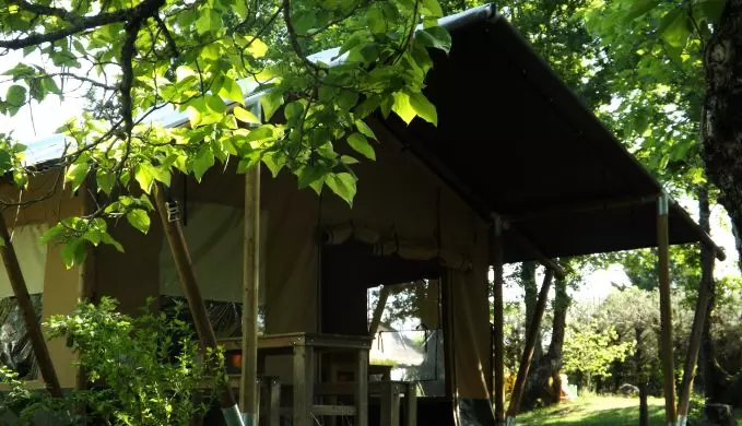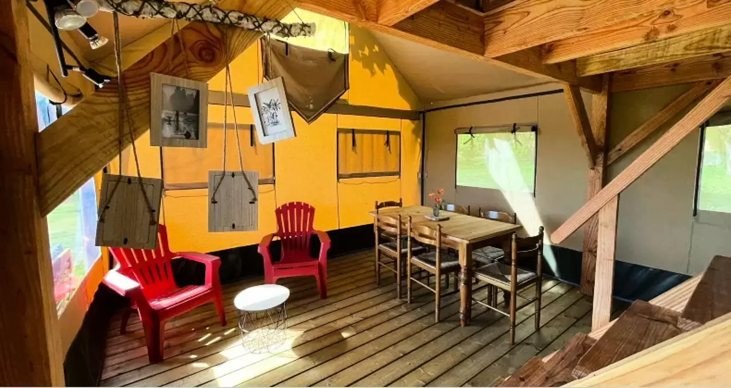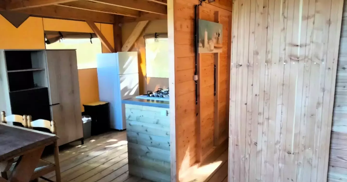 Possibilité d'ajouter une tente à côté du chalet pour les enfants, sans supplément.
