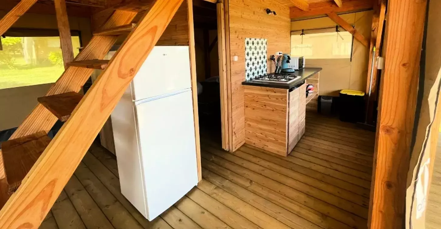 La Tente est équipé de plaques chauffantes au gaz et d'un réfrigérateur.