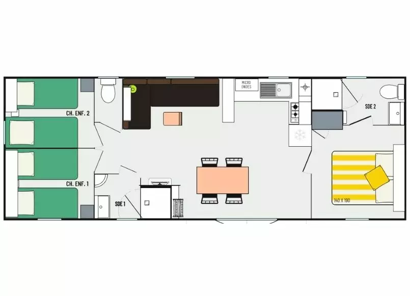 Mobil-home Loisir 5 pièces 8 personnes avec :