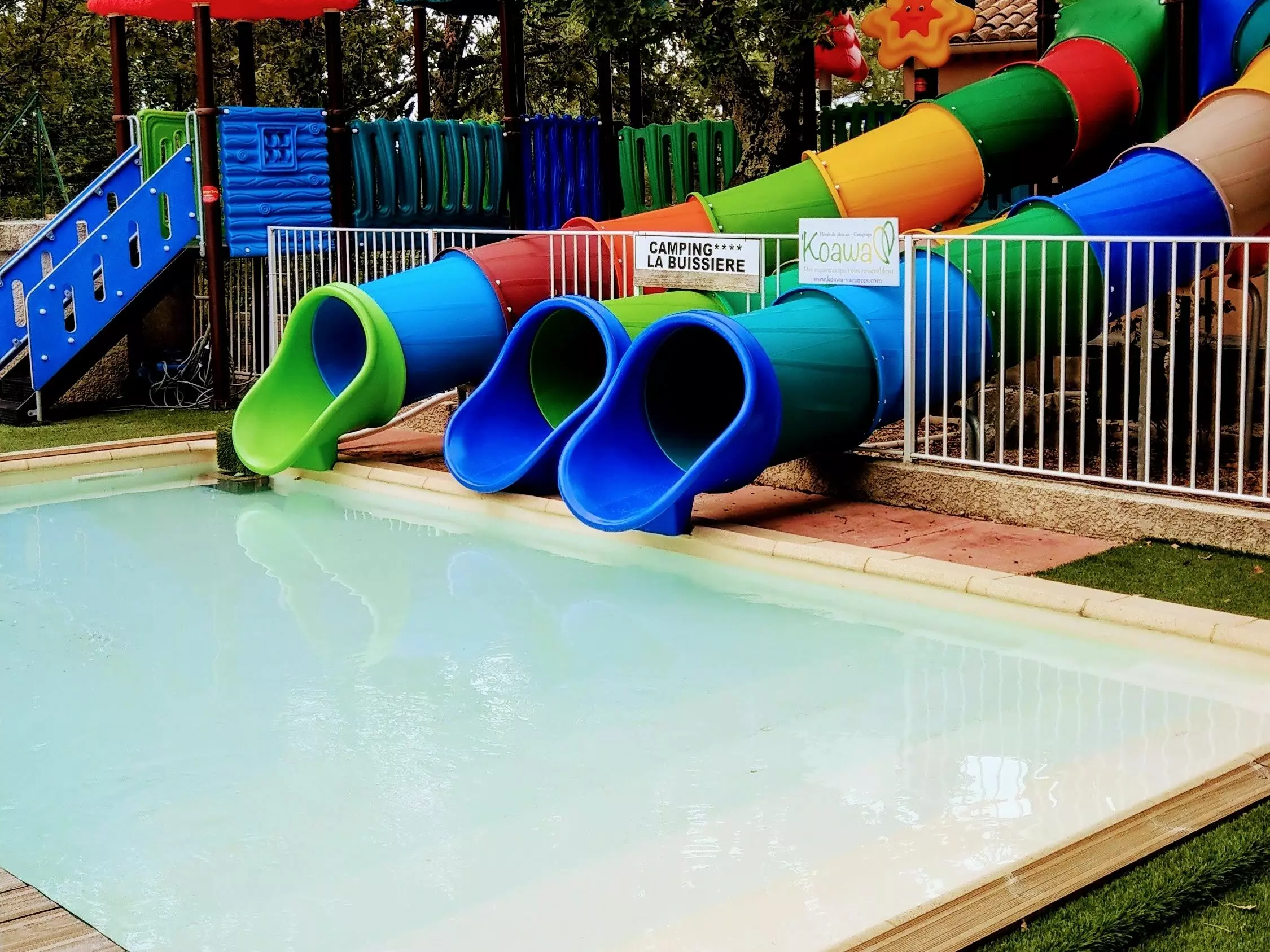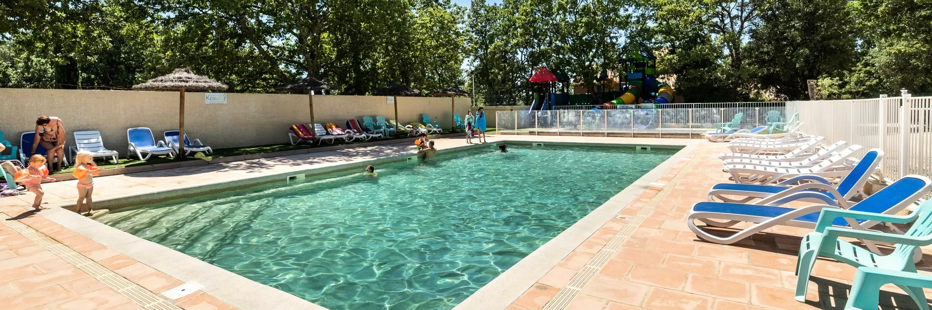 Profitez pleinement de vos vacances en Ardèche autour de l**'espace aquatique** comprenant deux piscines extérieures, une pataugeoire pour les petits et des toboggans pour les plus grands.