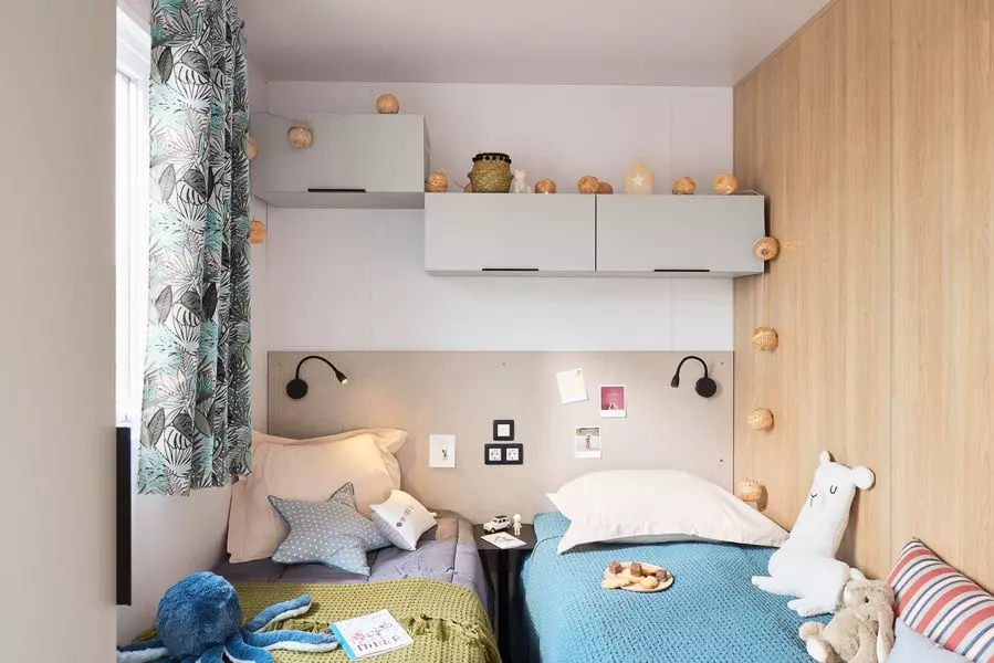 -1 chambre avec 1 lit simple 80x190 + 1 lit mezzanine 80x190