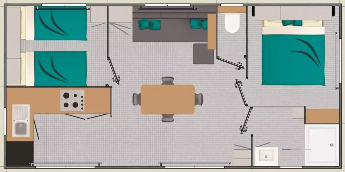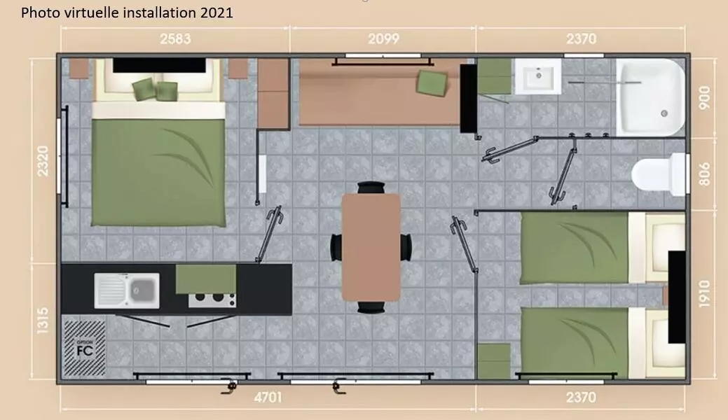 -1 chambre avec 2 lits simples 80x190 ou 1 lit simple 80x190 + 1 lit gigone 80x180
