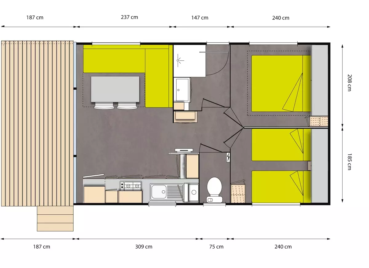 Emplacement doté de branchement électrique (un adaptateur de prise européenne est nécessaire pour utiliser l'électricité).
