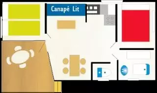 Mobil home Premium 3 pièces 6 personnes Climatisé avec :