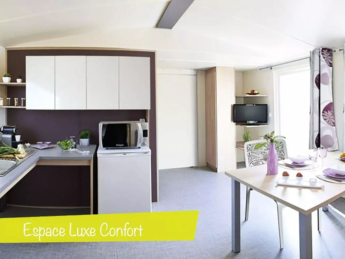 Mobil Home Espace Luxe 4 pièces 6 personnes avec :