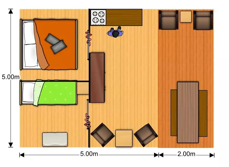 Le logement comprend : - Coin cuisine : plaques de cuisson, réfrigérateur/congélateur, bouilloire, cafetière, vaisselle/couverts