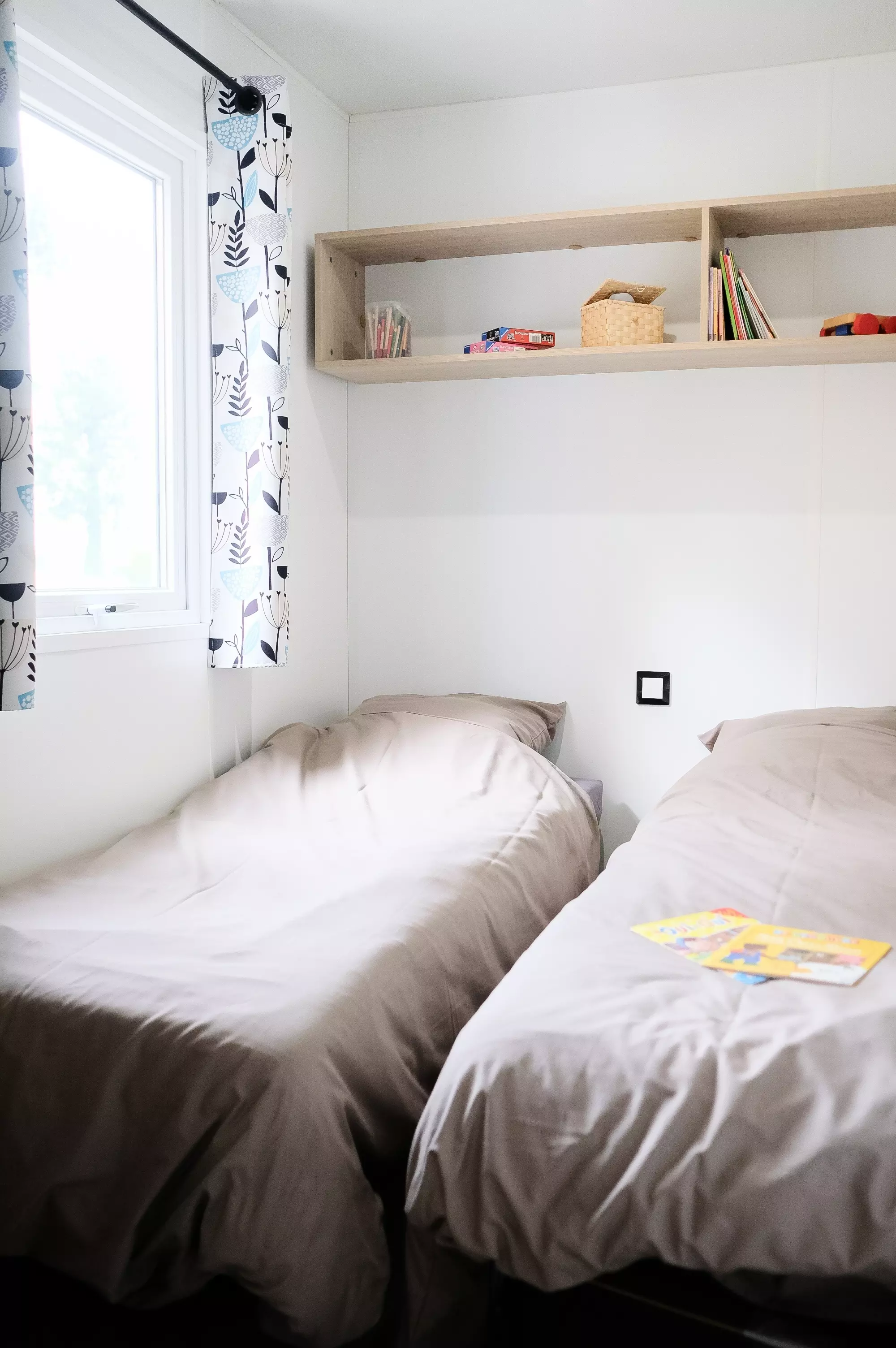 À noter : Les tailles de lits mentionnées sont non contractuelles. Il est possible d'avoir de légères différences de tailles selon les modèles de locatifs. La disposition des lits et la décoration peuvent également varier.