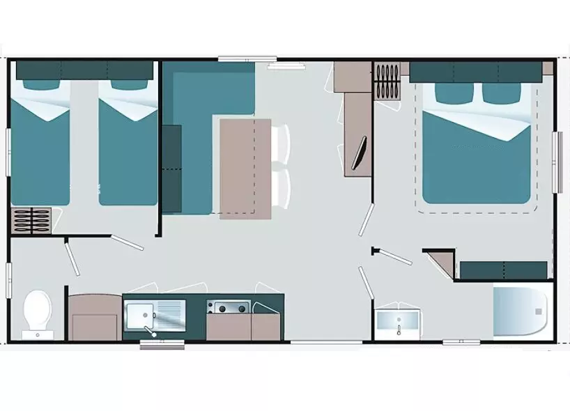 Mobil Home 4 pièces pour 6 personnes de 30m² environ avec :