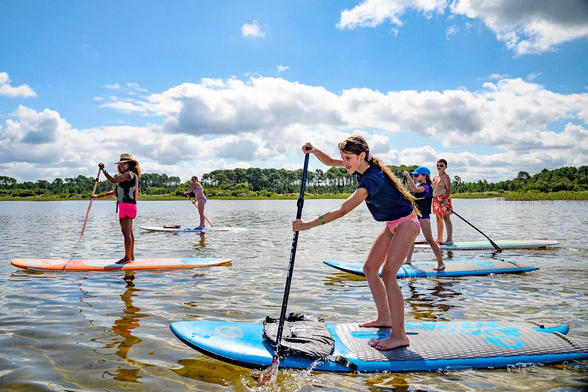 Le lac de Lacanau, protégé des vents, offre un cadre idéal pour vos activités nautiques : paddle, canoë, voile, kitesurf. Pour les amateurs de randonnée, explorez les 200 km de pistes cyclables ou les circuits pédestres, notamment dans la réserve naturelle de l'étang de Cousseau, entre forêt et lacs.