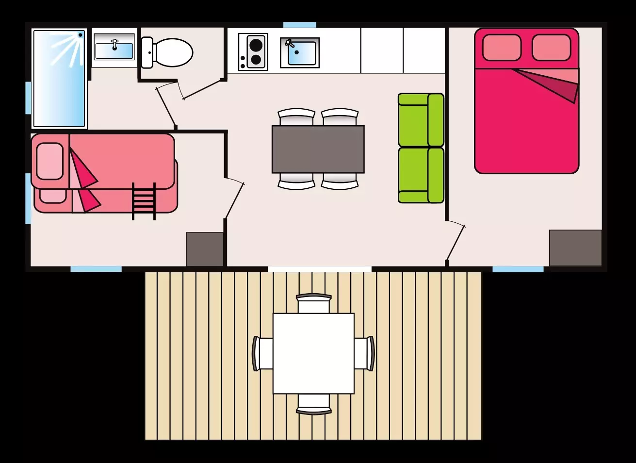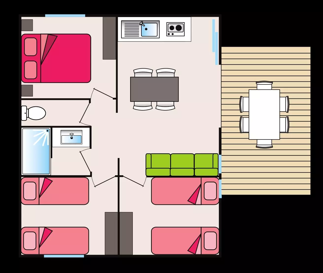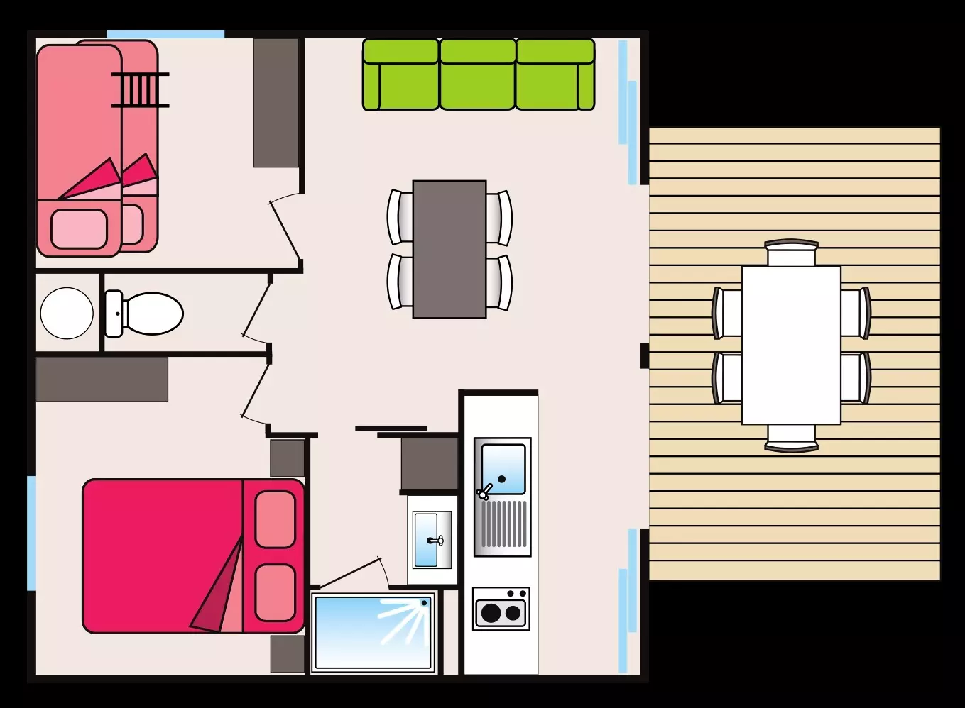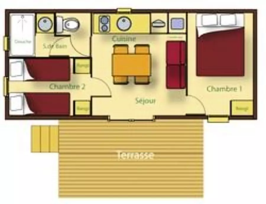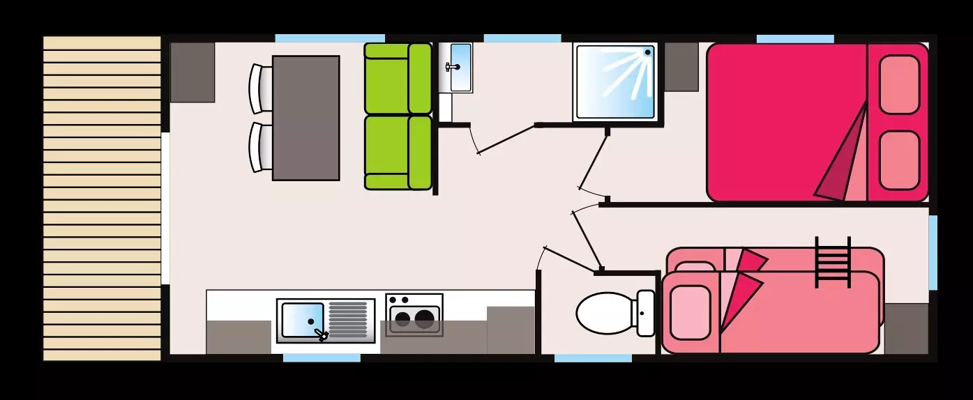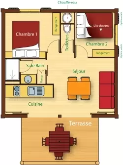 Mobil Home Confort Bigarreau 3 Pièces 4 Personnes avec :