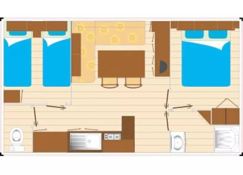 Mobil Home 4 pièces pour 6 personnes de 30m² environ avec :