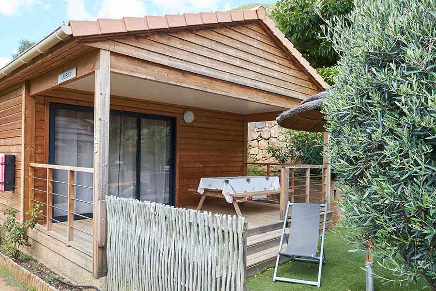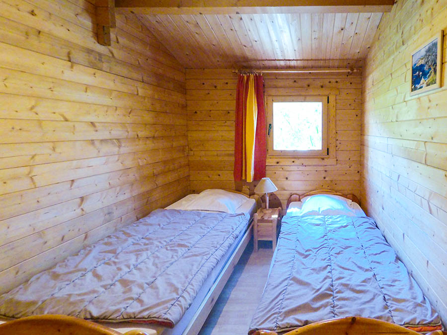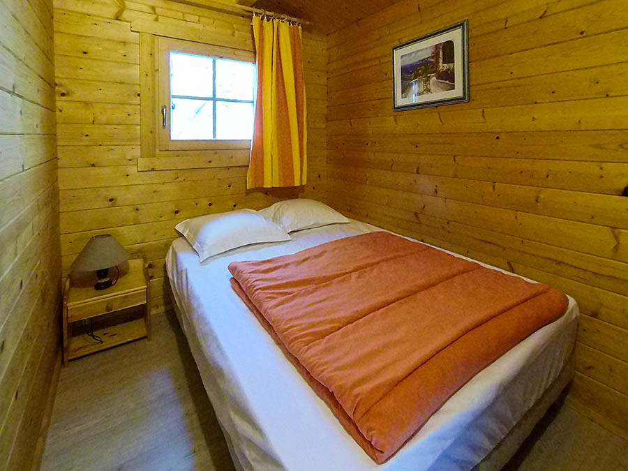 • Chalet "Scandola" 35 m² (1 à 5 personnes, 2 chambres) : une chambre avec un lit double en 140x200 et une 2ème chambre avec un lit superposé et un lit tiroir.
