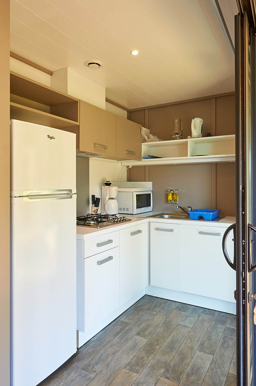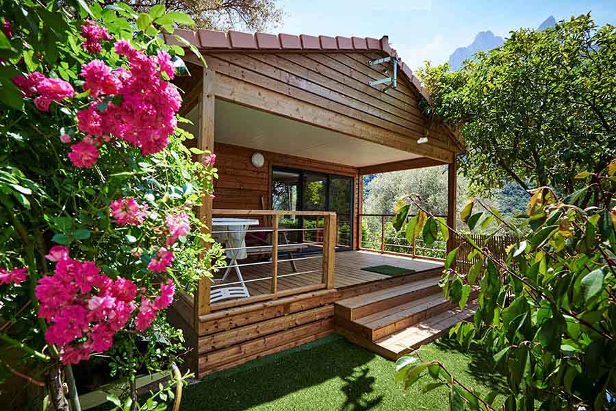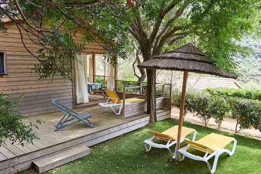 Tous nos hébergements sont climatisés et équipés de : un espace de vie lumineux climatisé, cuisine équipée (réfrigérateur, congélateur, lave-vaisselle (uniquement pour les chalets "Monte Rosso"), plaque de cuisson, micro-ondes, cafetière, grille-pain & bouilloire, pas de télévision. Coffre-fort, terrasse et/ou jardinet munis de table, chaises et chaises longues. Les taies sont sur les oreillers et les couettes fournies. Location de draps et de serviettes possible, et ménage en option.