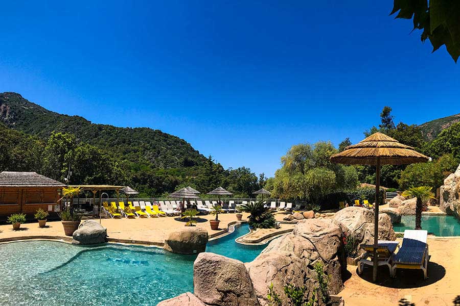 Une magnifique piscine (ouverte d'avril à fin octobre) lovée dans la végétation où se regroupent un coin balnéo, son chemin massant, un bains à remous, une pataugeoire pour les enfants et un bain bouillonnant. Une rivière directement accessible du camping, un sentier botanique, des tables de tennis de table, Half Court, jeux pour enfants (club pour les 6-12 ans ouvert du 1er juillet au 31 août), salle de fitness, sauna/ hammam (avec supplement), terrain de pétanque. À deux pas des calanques de Piana, du petit port typique de Porto, du golfe de Girolata et des plus beaux sentiers de randonnée de l'Ouest corse. La mer est à 1 500 mètres.