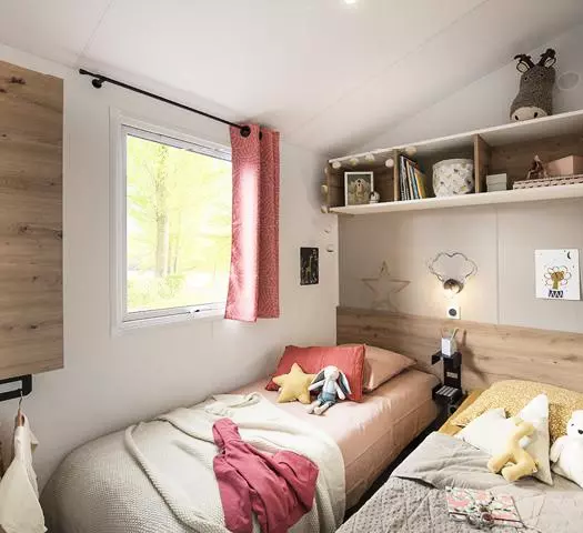 Les tailles de lits mentionnées sont non contractuelles. Il est possible d'avoir de légères différences de tailles selon les modèles de locatifs. La disposition des lits et la décoration peuvent également varier.