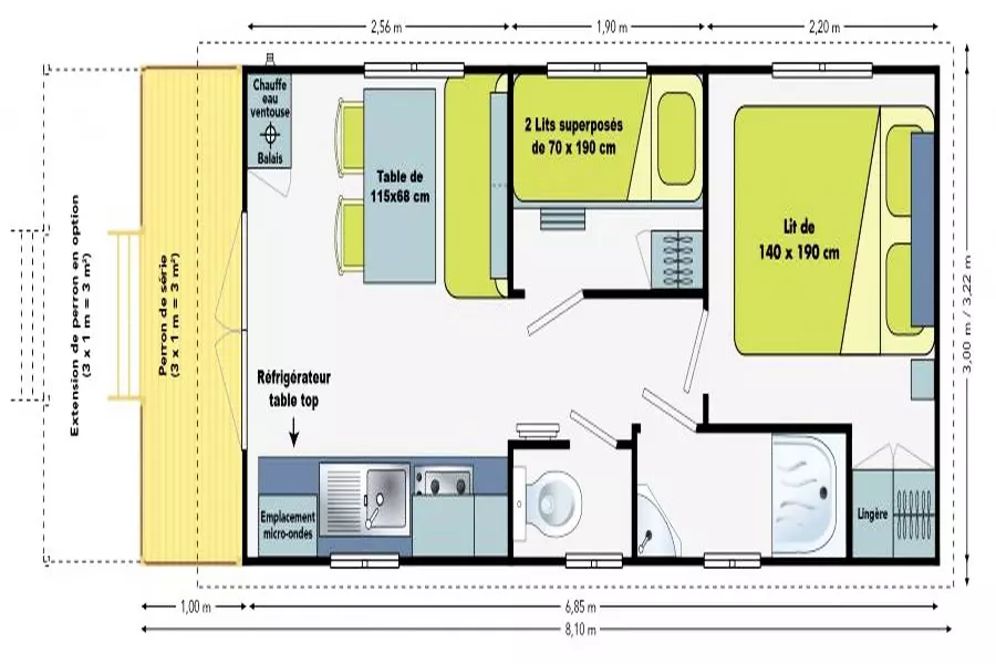 Mobil Home 4 Pièces 6 Personnes, de 30 m² avec :