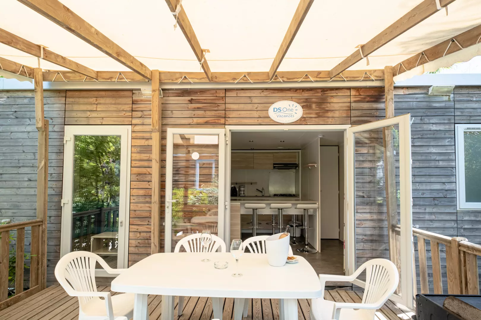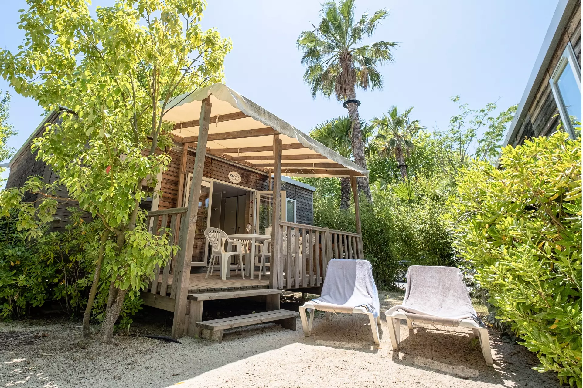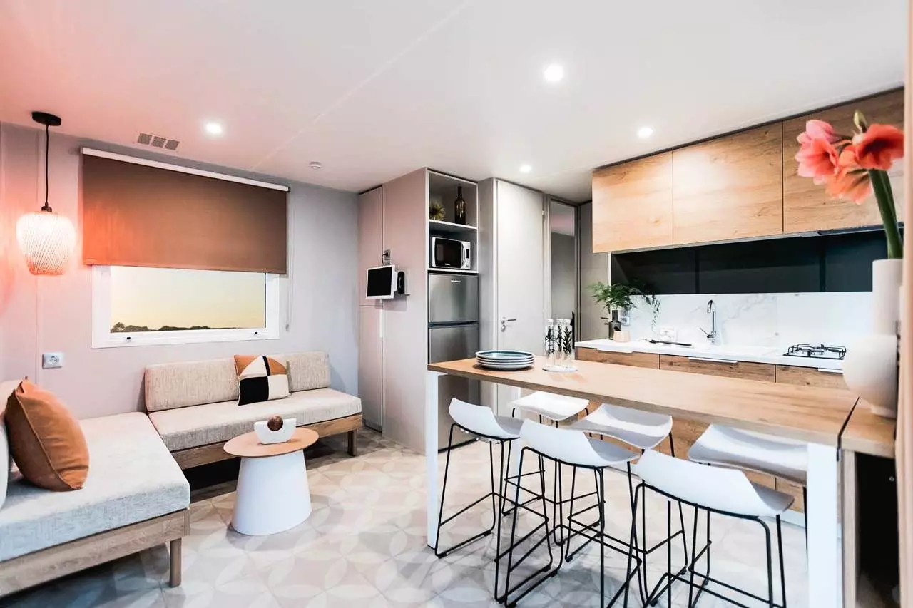 Mobil home Exotique Luxe 4 Pièces 6 Personnes Climatisé avec :