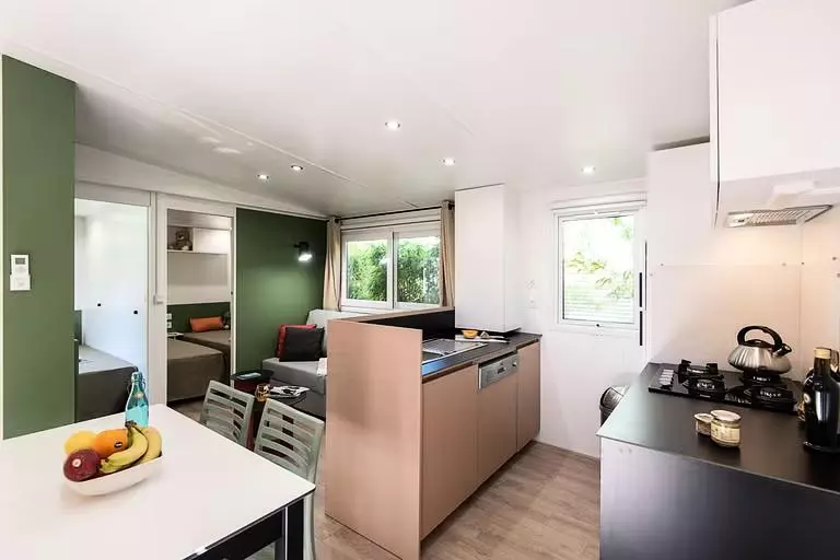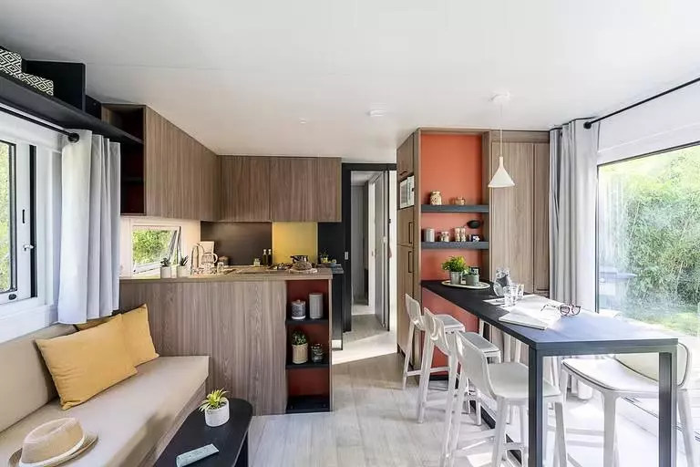 Mobil Home 4 pièces pour 4 adultes + 2 enfants -18 ans de 32m² environ avec :