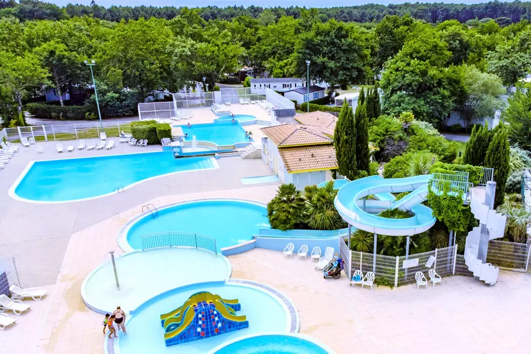 Au cœur des Landes, offrez-vous un espace de nature et de liberté. Vous séjournerez à 200 mètres du lac de Sanguinet et pouvez profiter de l'immense espace aquatique avec ses 6 bassins (dont 4 chauffés), ses toboggans, son bain à bulles ...