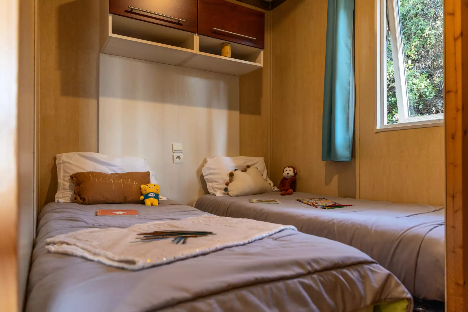 À noter : Les tailles de lits mentionnées sont non contractuelles. Il est possible d'avoir de légères différences de tailles selon les modèles de locatifs. La disposition des lits et la décoration peuvent également varier.