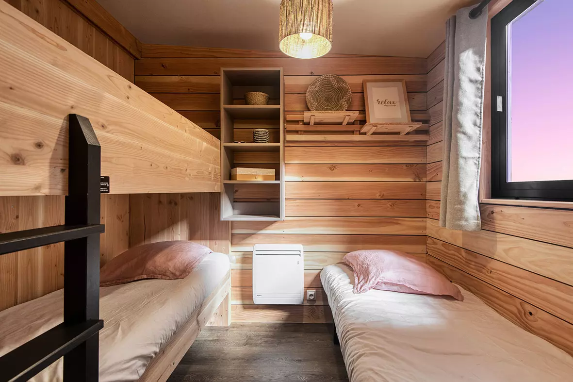 À noter : Les tailles de lits mentionnées sont non contractuelles. Il est possible d'avoir de légères différences de tailles selon les modèles de locatifs. La disposition des lits et la décoration peuvent également varier.