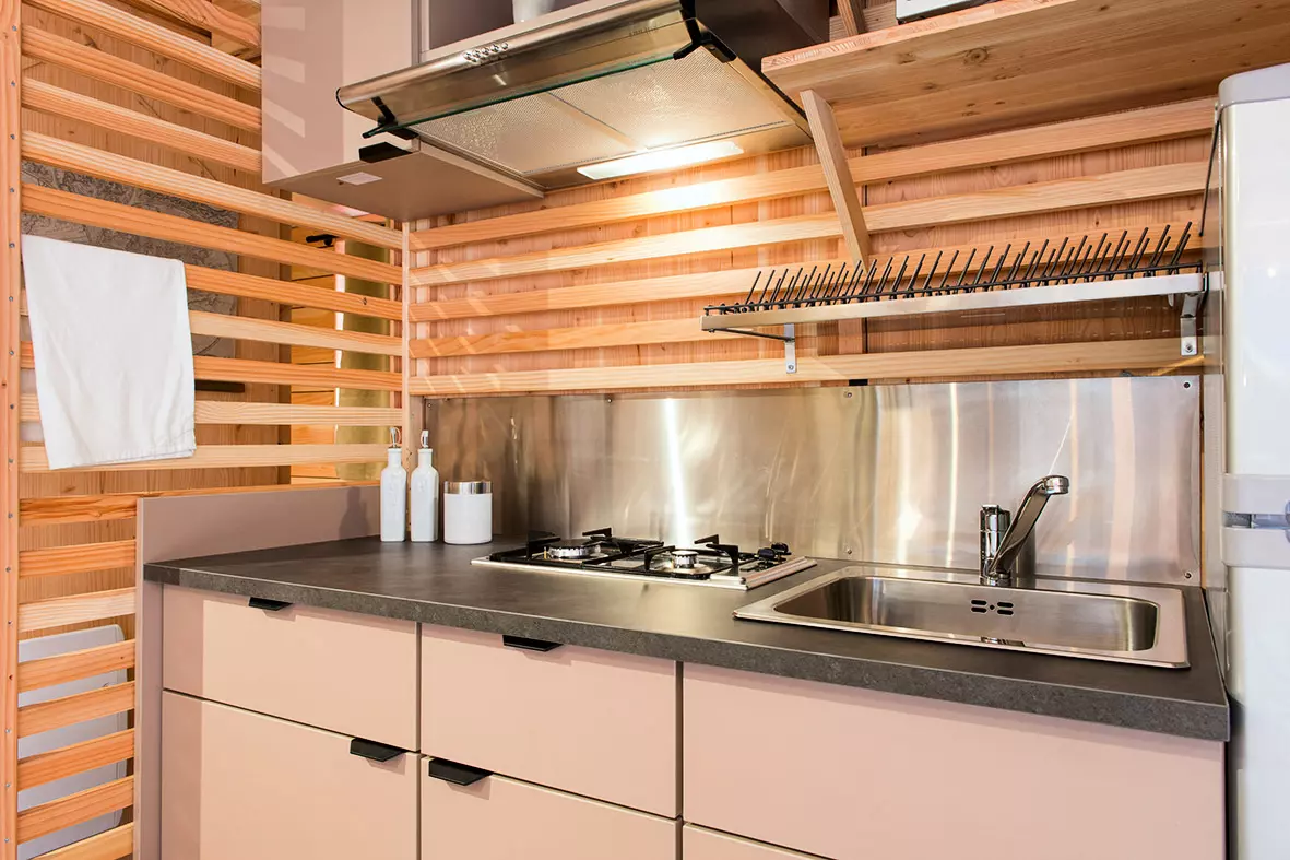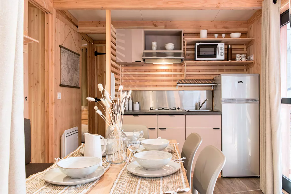 À noter : Le logement est équipé d'un chauffe-eau d'une capacité de 40 litres, avec un système de chauffe rapide. Cela signifie qu'il peut fournir de l'eau chaude rapidement, mais en quantité limitée. Il est donc recommandé d'espacer les douches ou d'opter pour des douches courtes afin d'assurer un confort optimal pour tous les occupants. Le lit superposé est interdit aux personnes de +70kg. Les tailles de lits mentionnées sont non contractuelles. Il est possible d'avoir de légères différences de tailles selon les modèles de locatifs. La disposition des lits et la décoration peuvent également varier.