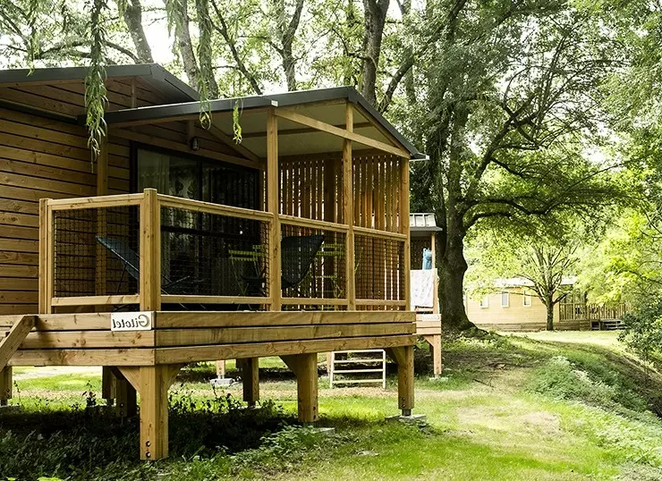 Cabane sur pilotis 3 pièces pour 5 personnes de 39m² environ avec :