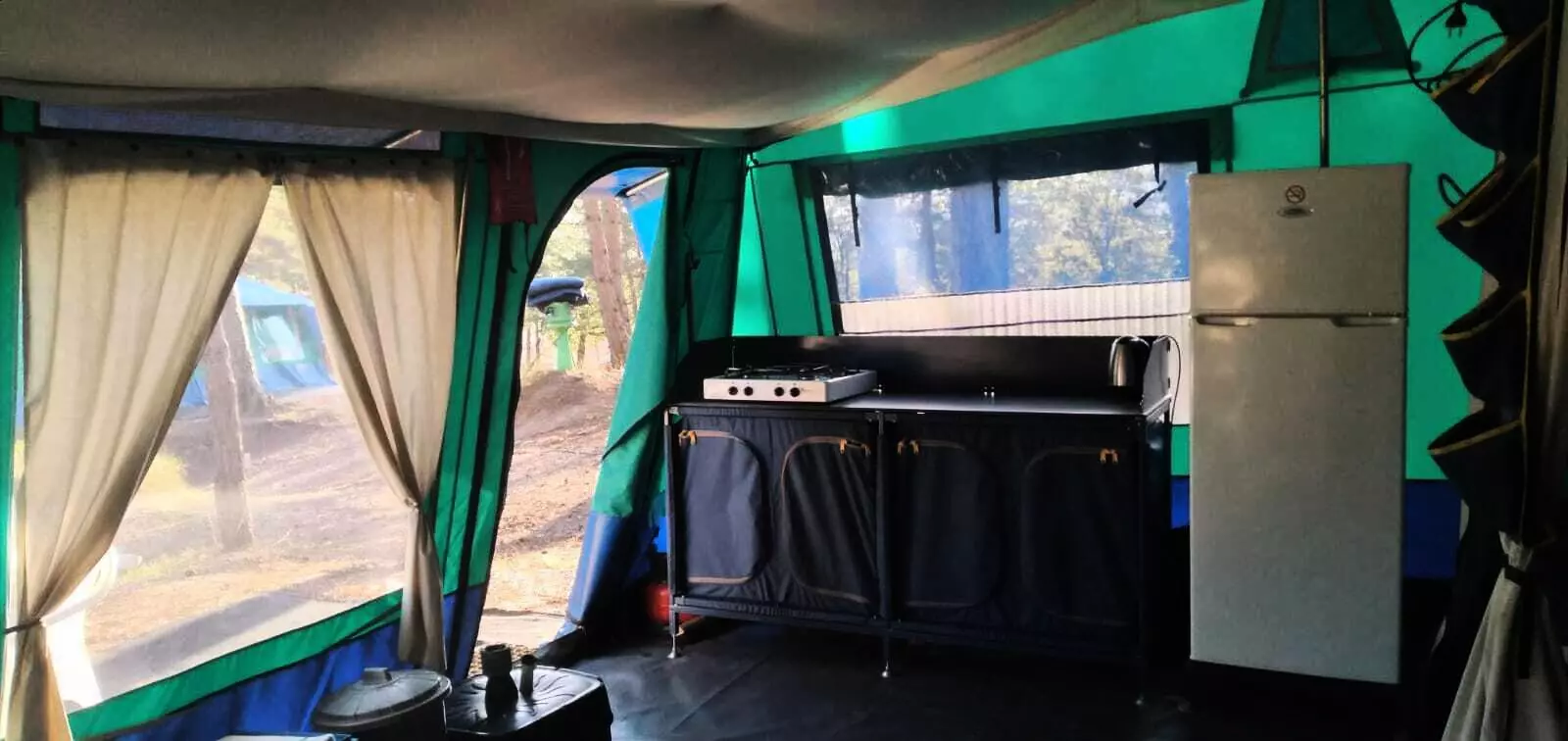 A noter : L'hébergement ne dispose pas de sanitaires, utilisation des sanitaires du camping. L'hébergement ne dispose pas du chauffage. Les tailles de lits mentionnées sont non contractuelles. Il est possible d'avoir de légères différences de tailles selon les modèles de locatifs. La disposition des lits et la décoration peuvent également varier.