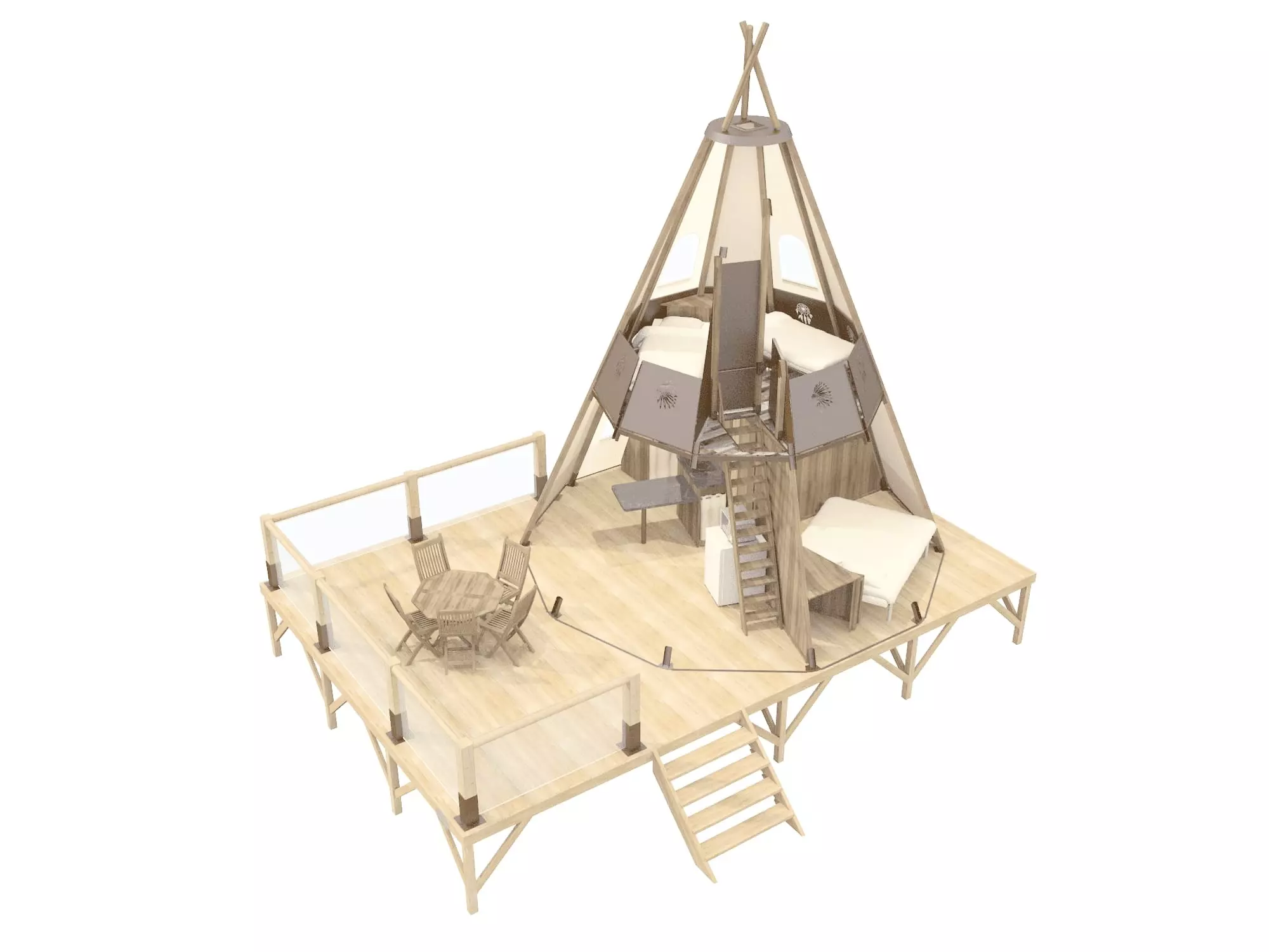 Tente Tipi 3 Pièces 4 personnes Sans sanitaire avec :
